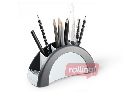 Izgatavots no augstas kvalitātes plastmasas. Ar 5 nodaļām rakstāmpiederumiem, šķērēm, saspraudēm u.c. (komplektā neietilpst). Neslīdošs pamats.