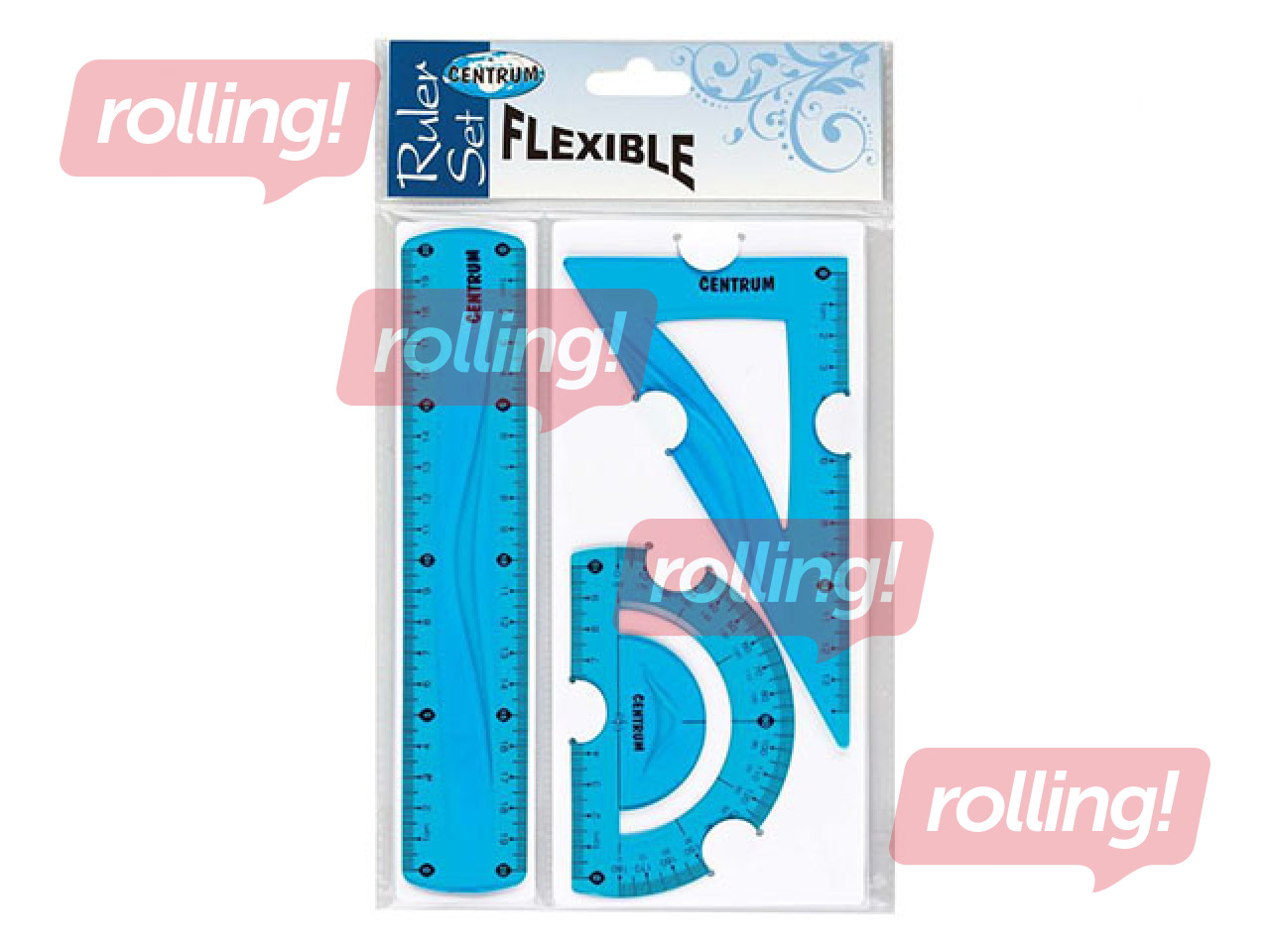 Lineālu komplekts Centrum, 3 priekšmeti, lokans, zils