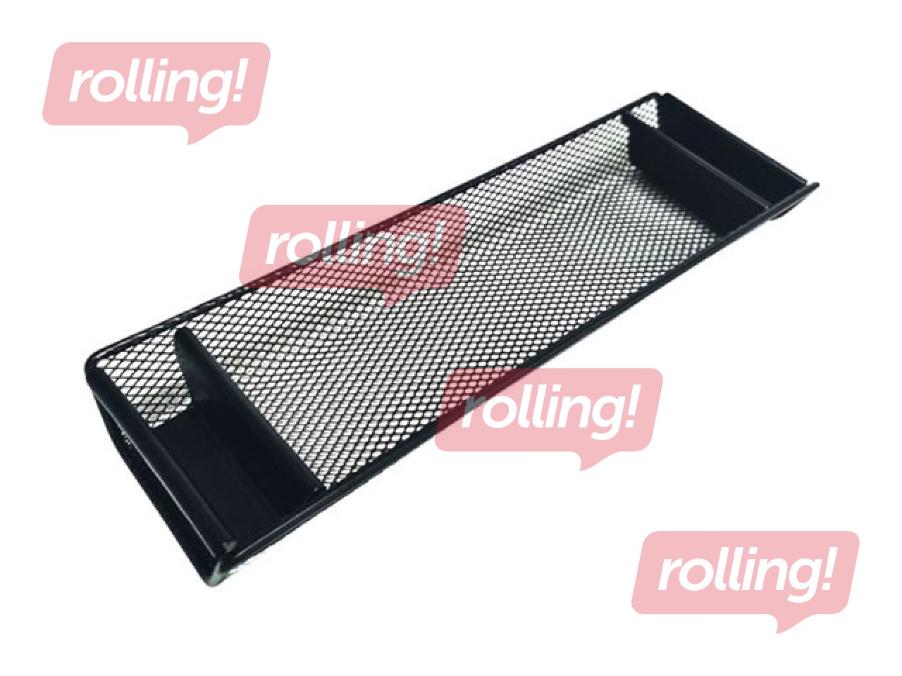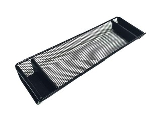 Ērts galda paliktnis pildspalvām un papīra klipšiem/ kniedēm. Izgatavots no melna sietiņveida metāla.