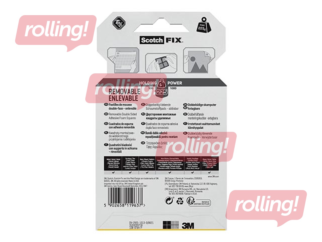 Montāžas kvadrātiņi 3M Scotch,12.7x12.7mm, noņemami