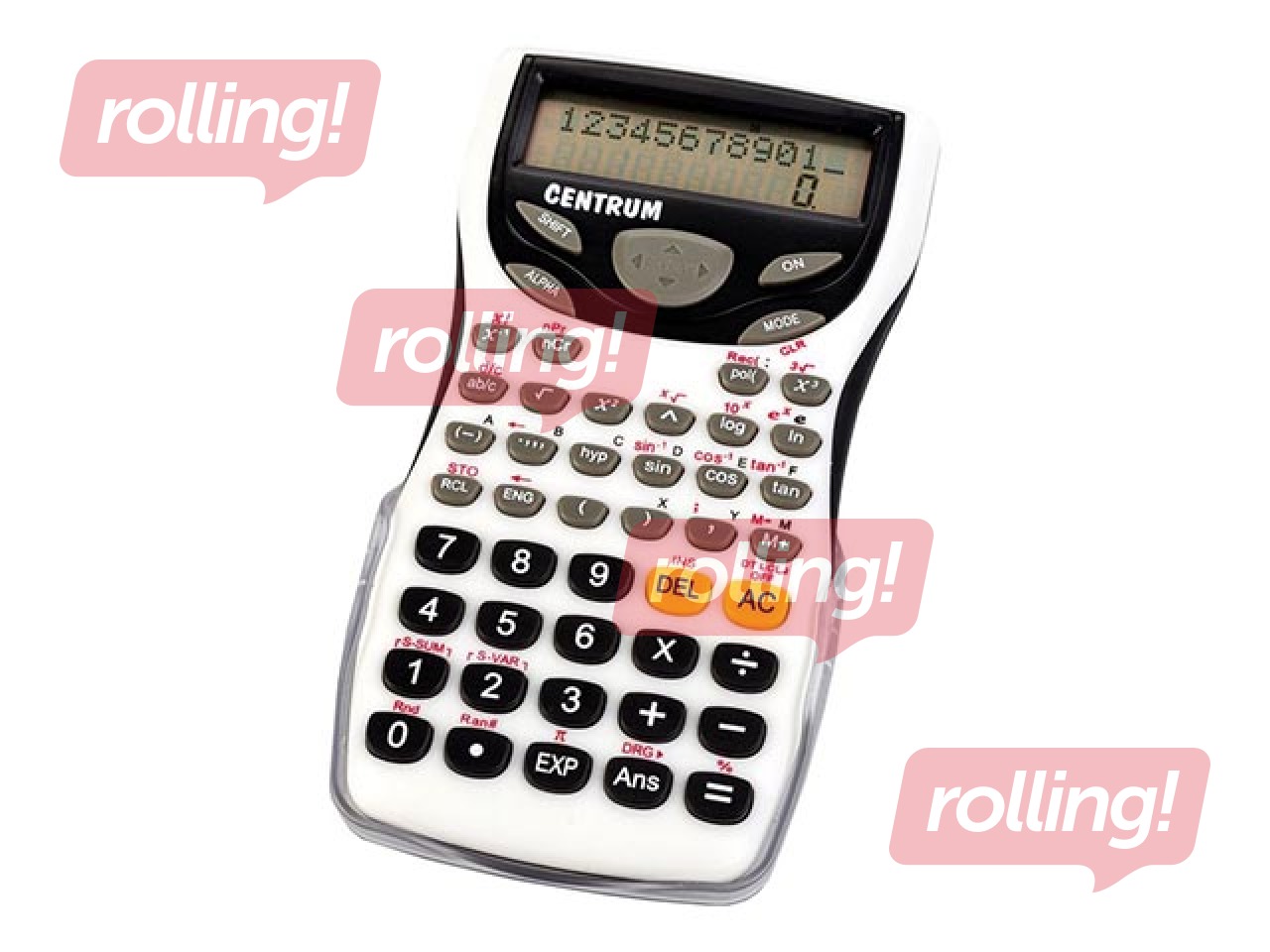 Zinātniskais kalkulators, 240 funkcijas, 10+2 cipari, 2 rindu displejs, plastmasas taustiņi.