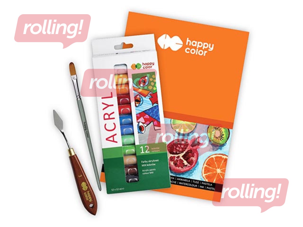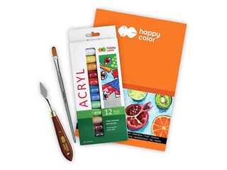 Komplekts ar augstas kvalitāties papīru, krāsām un akrila krāsošanas instrumentiem.