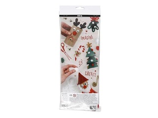 Komplektā: lipīga bāze (Sticky Base), filcs, papīrs, kartons, mirdzošais papīrs, šenila kociņi, mākslīgais sniegs, mazi zelta zvaniņi, kokvilnas aukla un pom-poms.