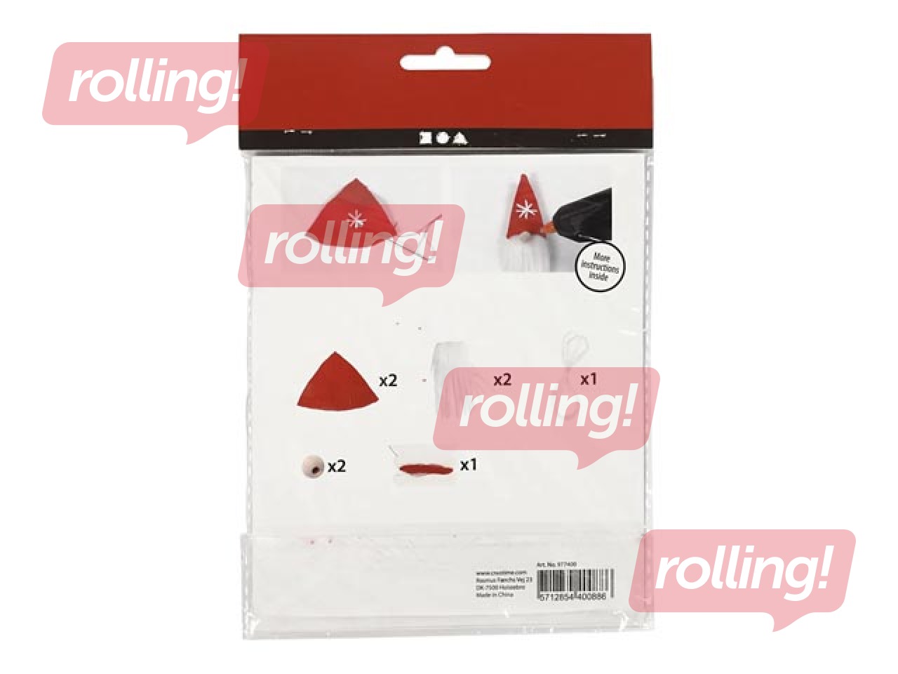 Materiālu komplekts divu Ziemassvētku rūķu šūšanai.