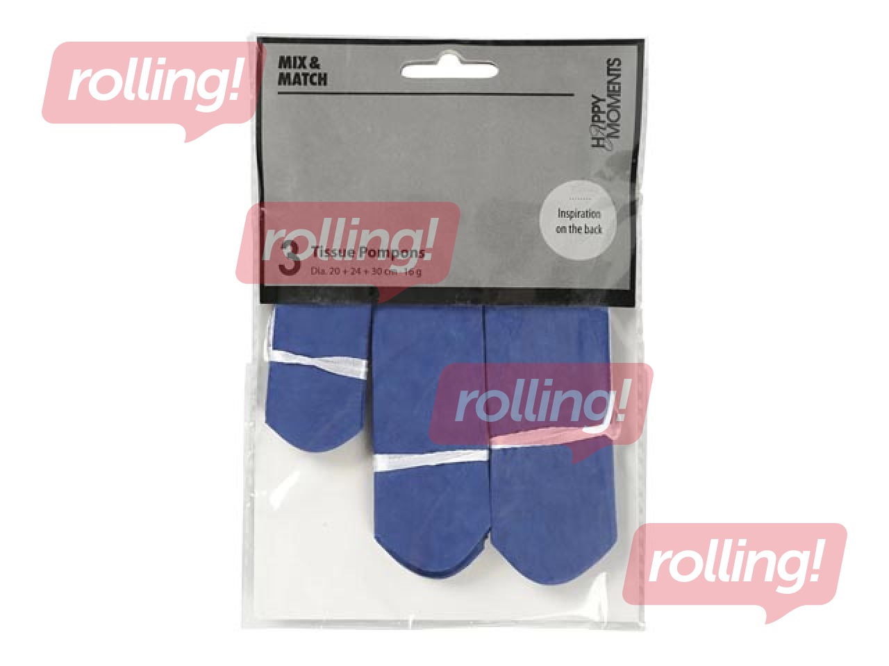 Zīdpapīra pomponi, tumši zili, 3 gab.