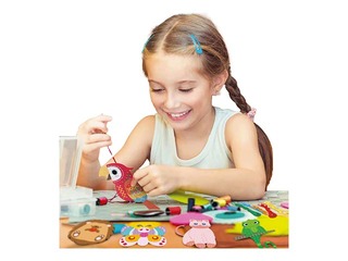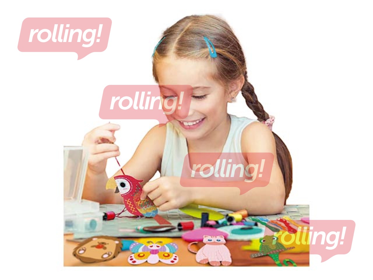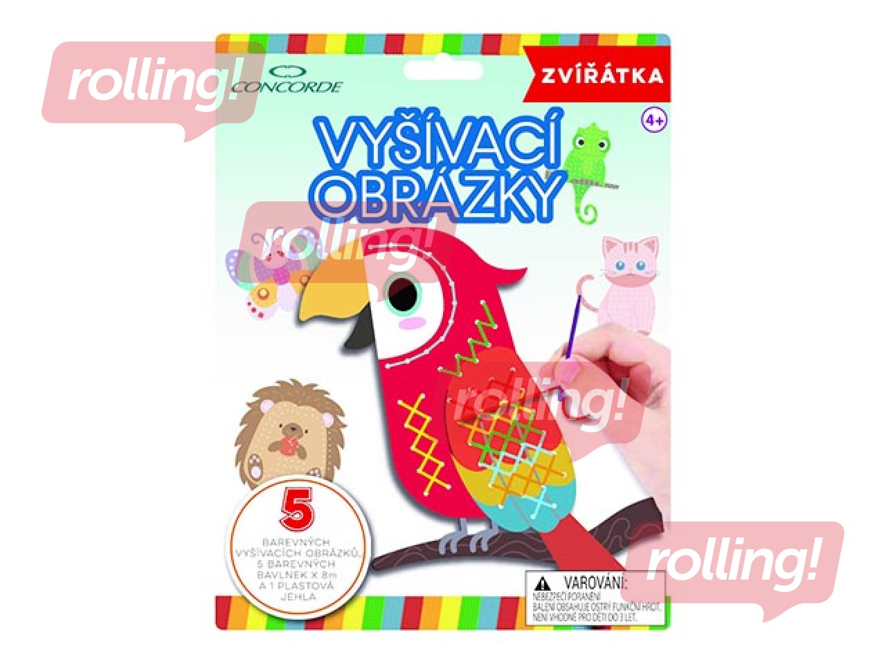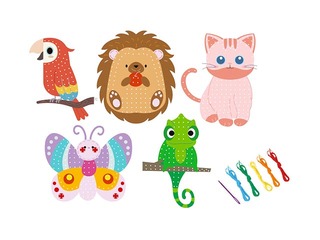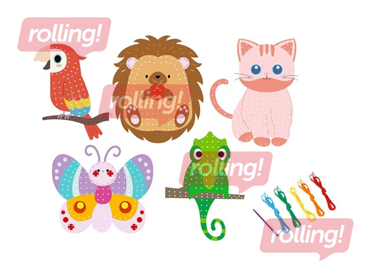 Bērnu izšūšanas komplektā ir 5 mīļi dzīvnieku motīvi (ezis, tauriņš, papagailis, kaķis un hameleons), 5 krāsaini kokvilnas diegi, 8 metri (sarkans, zaļš, dzeltens, oranžs un gaiši zils) un viena plastmasas adata. Izšūšana ir jautrs un radošs veids, kā attīstīt bērnu prasmes, uzlabot veiklību, veicināt radošumu un koncentrēšanos.