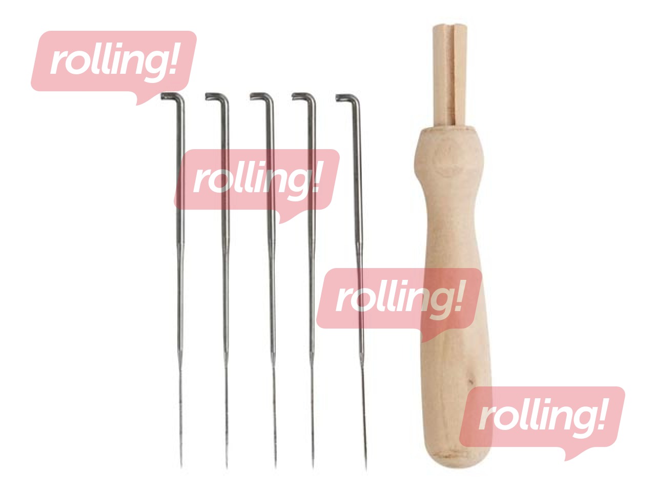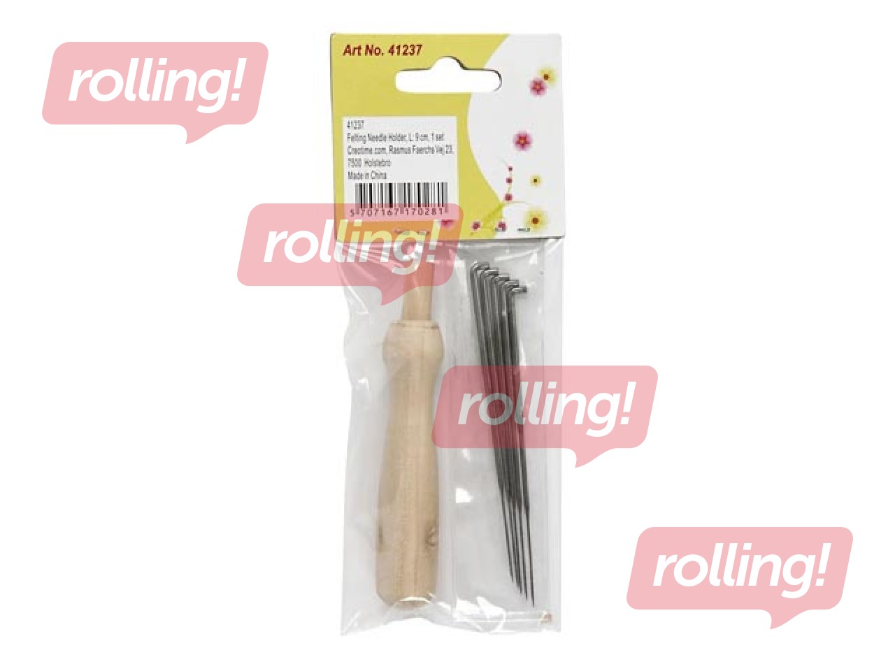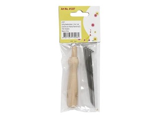 Praktisks adatu filcēšanas turētājs no koka - 1 adatai un komplektā 5 vidējas adatas.