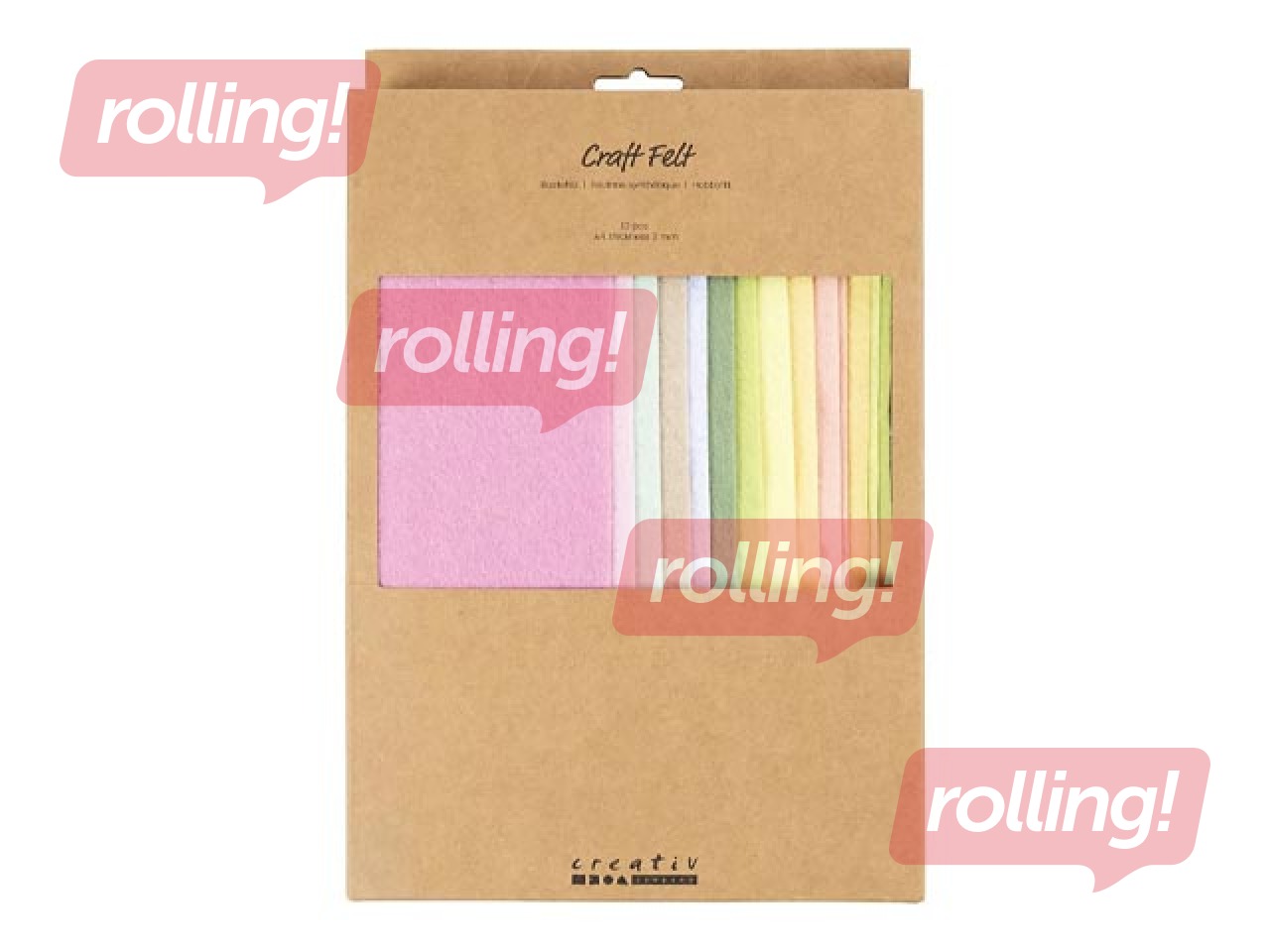 Mīksts filcs skaistās pasteļkrāsās, izgatavots no 100% poliestera. Lieliski piemērots radošiem griešanas un šūšanas projektiem – Ziemassvētku un pavasara dekorācijām, rotaļlietām un citiem rokdarbiem. Filcs ir viegli apstrādājams, tāpēc ar to var darboties arī bērni.