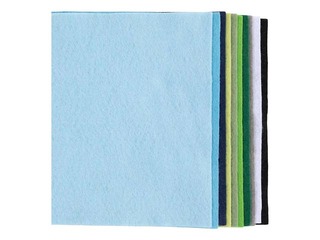 Mīkstas filca loksnes "zilā un zaļā harmonija", izgatavotas no 100% poliestera. Piemērotas dažādiem radošiem griešanas un šūšanas projektiem – Ziemassvētku dekorācijām, pavasara rotājumiem, rotaļu lācīšiem un citiem darbiem. Šis amatniecības filcs ir lielisks materiāls radošām idejām. To ir viegli apstrādāt, tāpēc pat mazākie bērni var griezt, šūt un līmēt filcu. Malas neizirst, tādēļ rezultāts vienmēr būs skaists un kārtīgs.No šī filca varēsi radīt burvīgas Ziemassvētku rotas, mīlīgas leļļu drēbītes, mīkstas rotaļlietas un daudz ko citu.