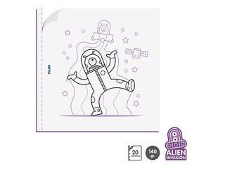 20 zīmējumi par citplanētiešiem, zvaigznēm, planētām un kosmiskajiem kuģiem, lai izzinātu plašo kosmosu. Krāsojamās grāmatas veicina bērnu radošumu un iztēli, kā arī palīdz attīstīt koordināciju, smalkās motorikas prasmes un koncentrēšanos. Ieteicams no 4 gadu vecuma. Izmēri: 21 x 21 cm. 140 g papīrs no ilgtspējīgām plantācijām, mikroperforēts.
