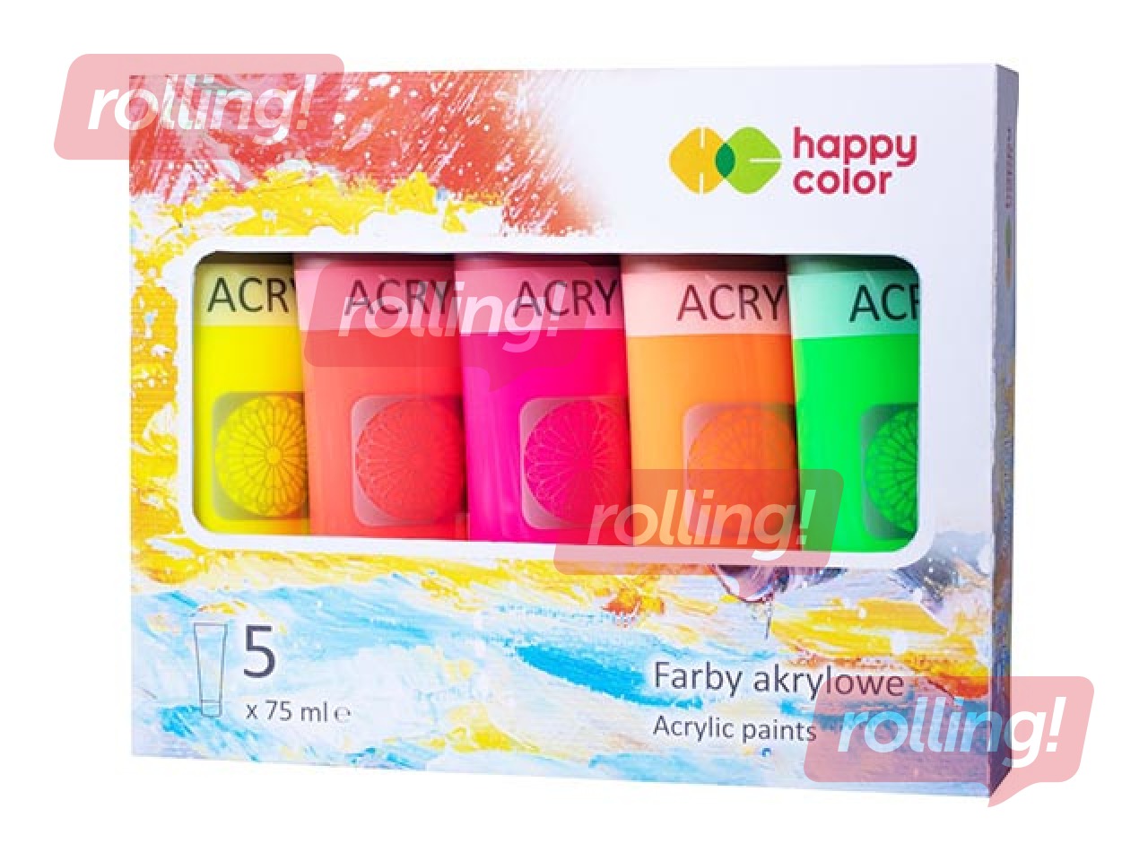 Akrila krāsas Happy Color Fluo, 5kr.х75ml (tūbiņas)