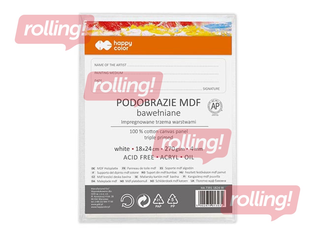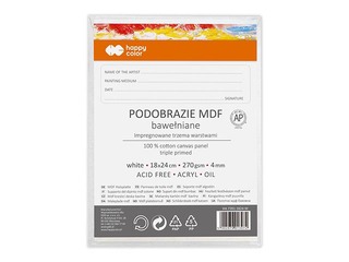 Kokvilnas audekls uz 4 mm MDF dēļa. Ideāli piemērots akrila un eļļas krāsām. Iekštelpām un ārtelpām. Kokvilnas audekls ar blīvumu 270 g/m².