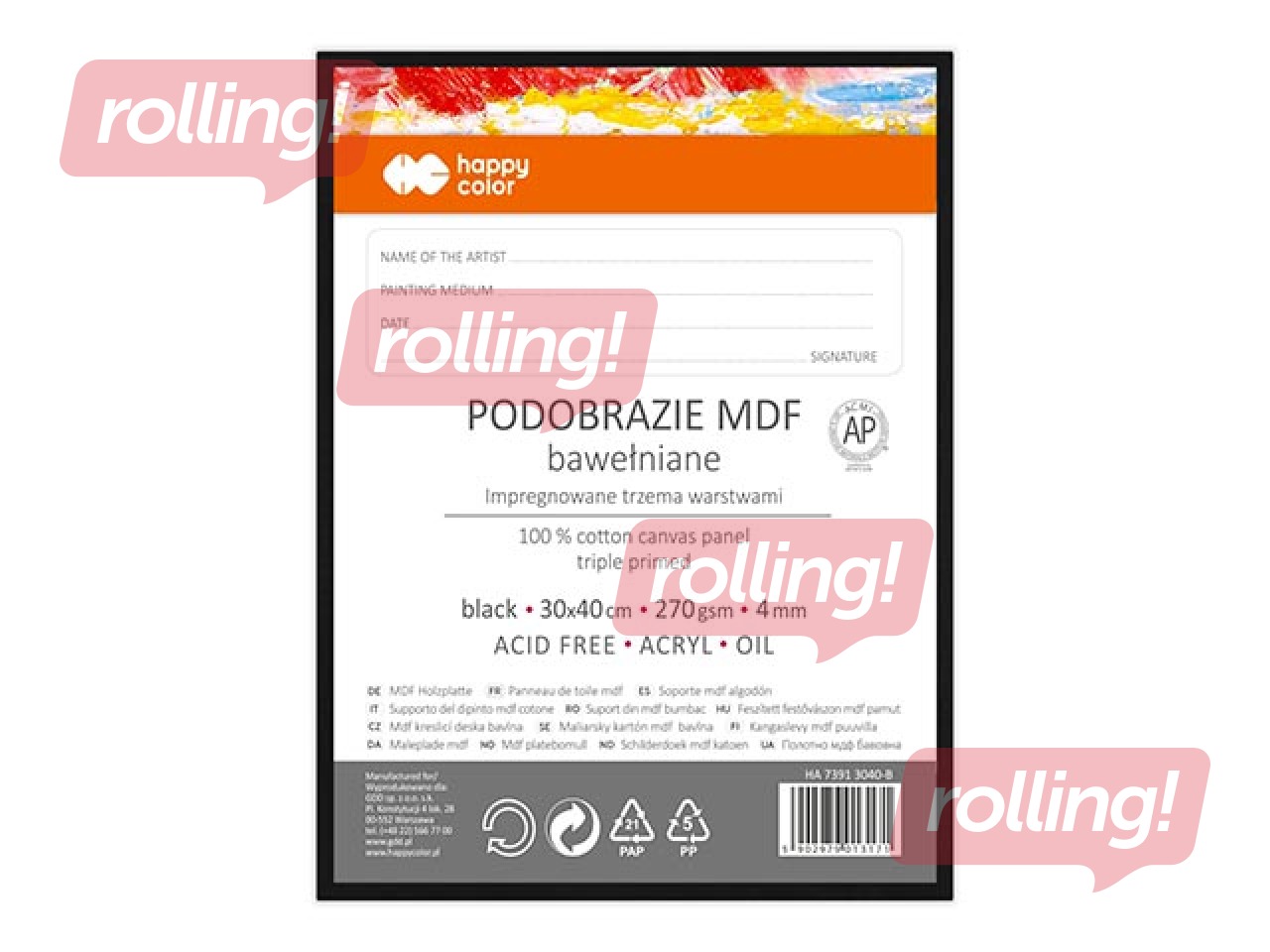 Audekls uz kartona Happy Color 30x40 cm, melns Salīdzināt