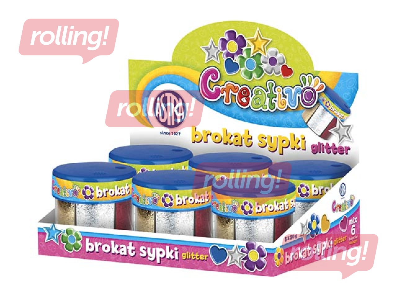 Dekoratīvie spīdumi (gliteri), Astra, 6 x 50 g, dažādas krāsas