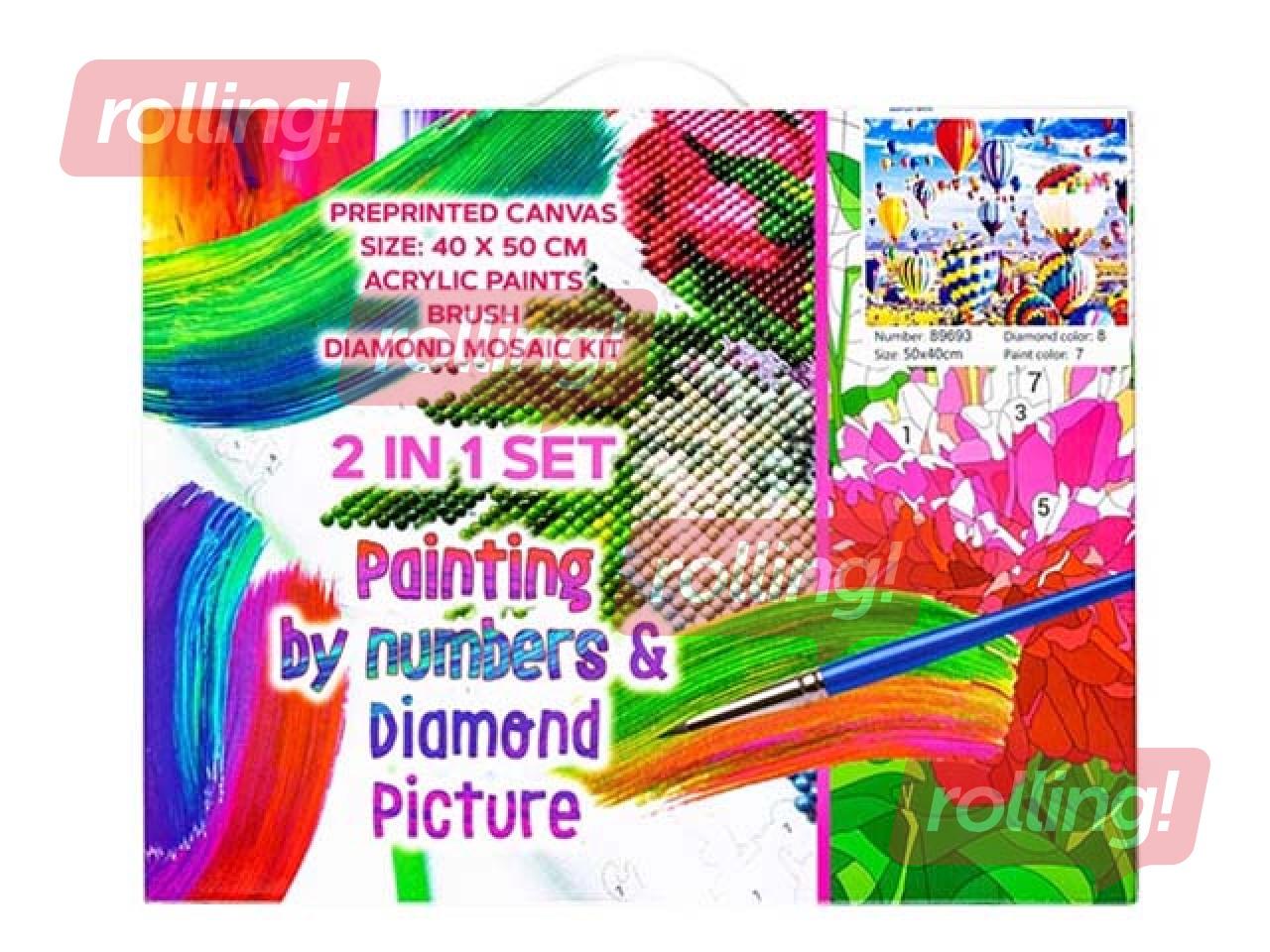 Dimanta mozaīka + gleznošana pēc numuriem, 40x50cm