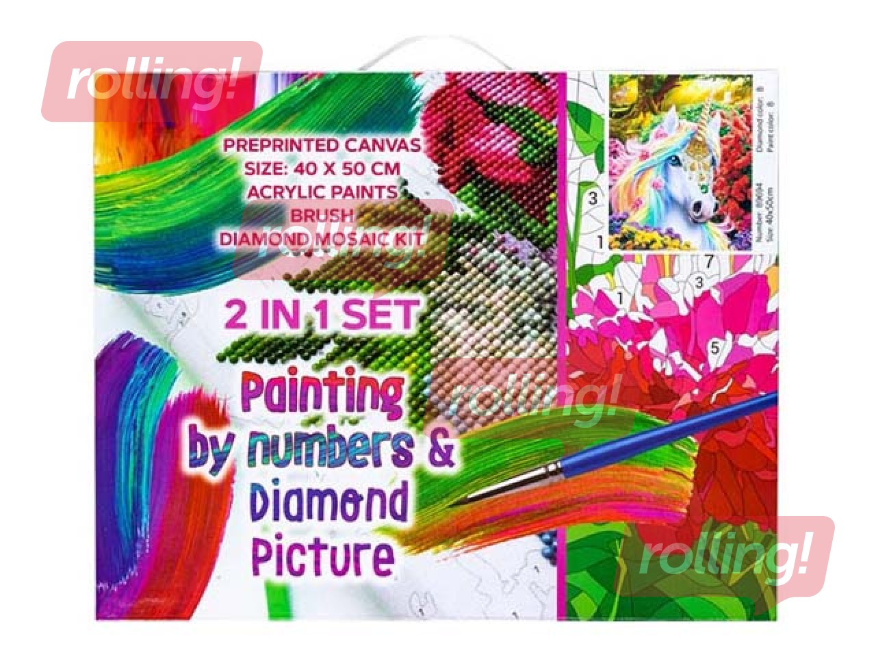 Dimanta mozaīka + gleznošana pēc numuriem, 40x50cm