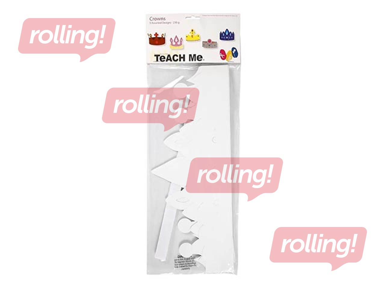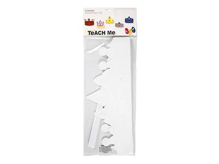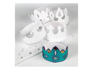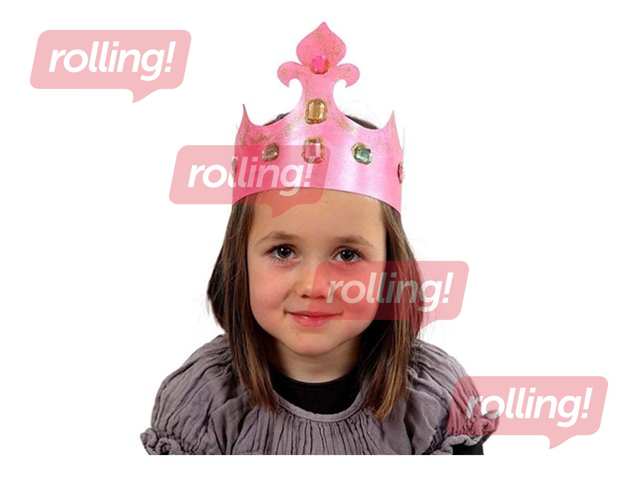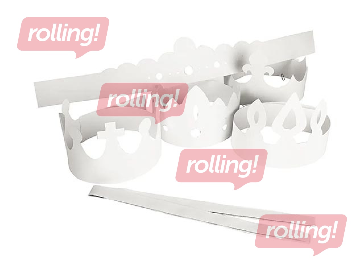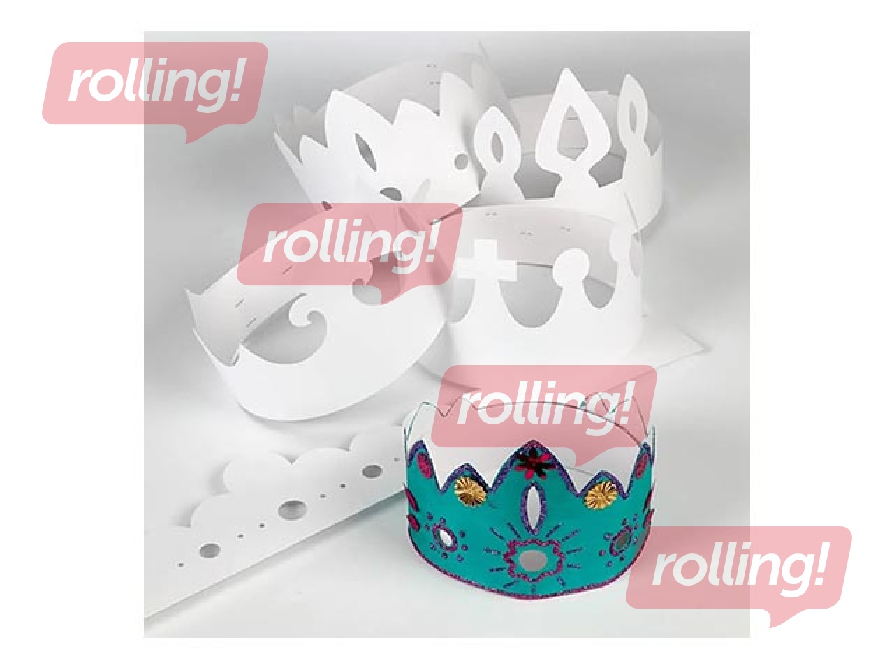 Kartona kroņi dažādos dizainos - komplektā ir Velcro siksniņa, lai pēc vajadzības pielāgotu izmēru.