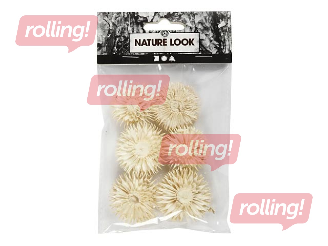 Izveidojiet skaistus rotājumus un radošus projektus ar šīm kaltētajām, balinātajām ziedu galvām. Ziedu galviņas ir nogrieztas no dadzim līdzīgā auga, kuras latīņu nosaukums ir Dipsacus.