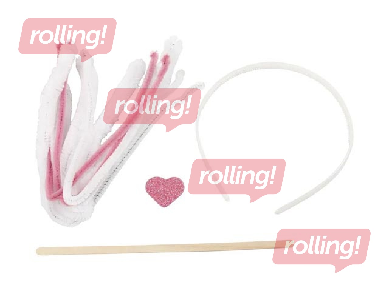 Sastāvs: plastmasas matu stīpiņa, šenila kociņi, koka irbulis,gumija.