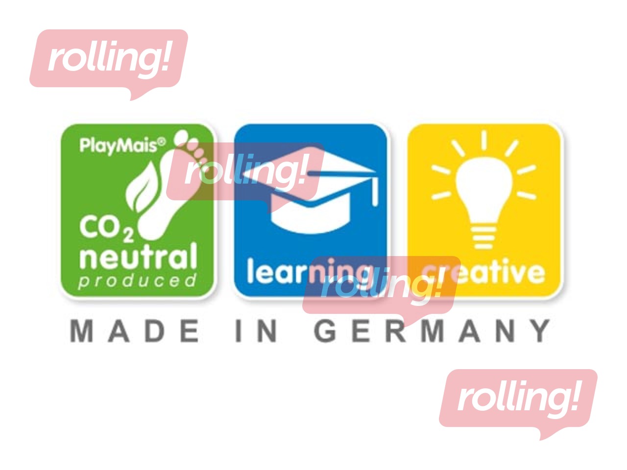 PlayMais® ir izgatavots no kukurūzas cietes, ūdens un pārtikas krāsvielas. Tas padara PlayMais® dabisku, drošu un 100% bioloģiski sadalāmu.