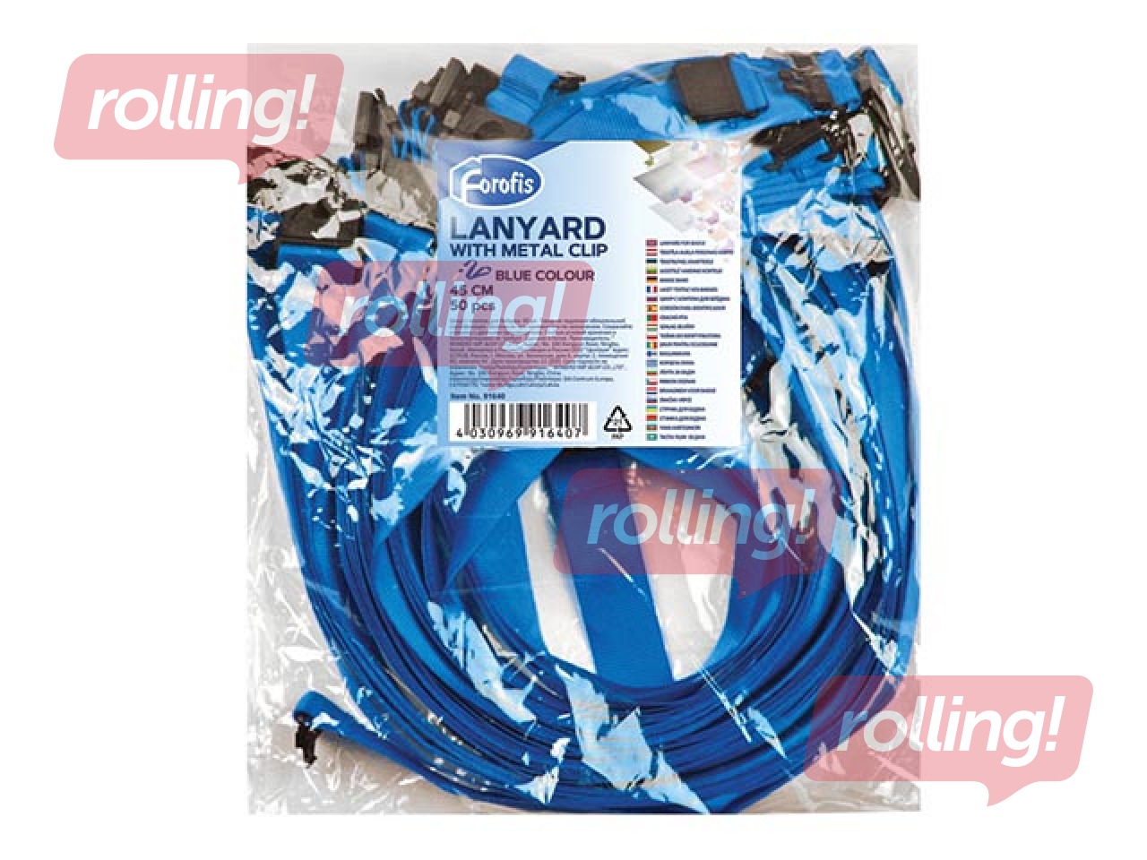 Identifikācijas kartes lenta ar drošības sprādzi Forofis, zila, 45 cm
