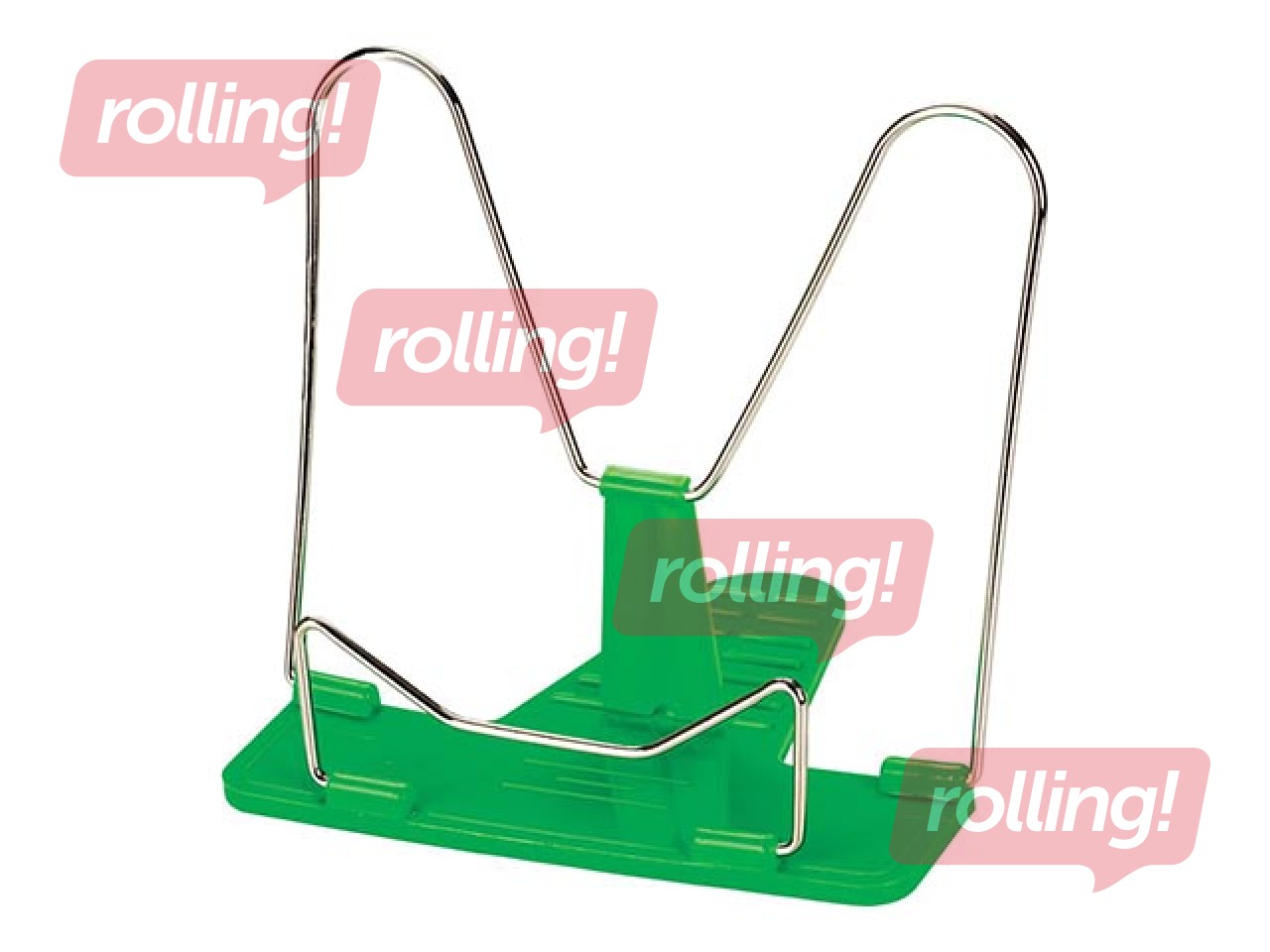 Metāla grāmatu turētājs ar caurspīdīgu plastikāta pamatni. Iespējams regulēt slīpumu.
