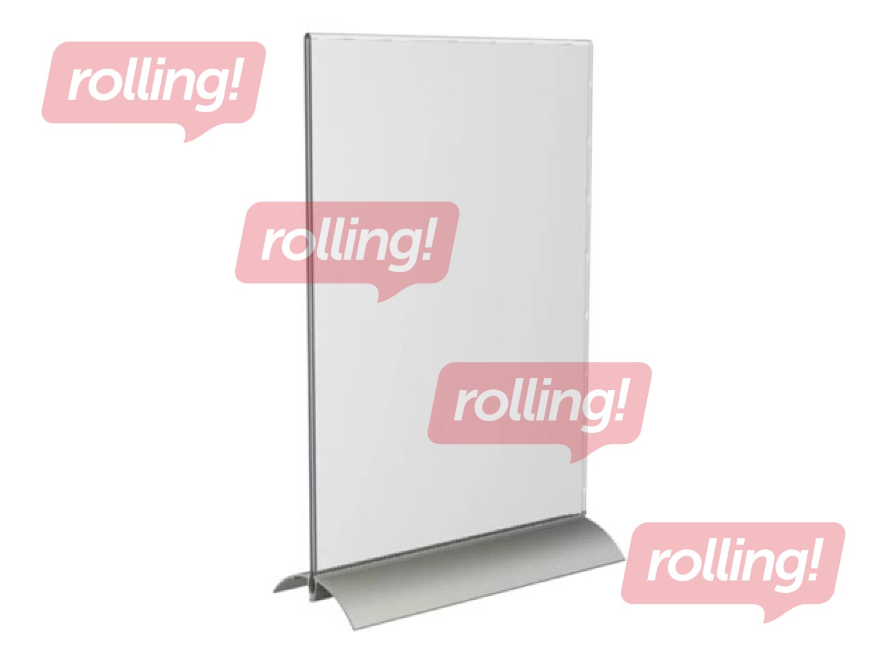 Prospektu turētājs ar alumīnija pamatni, 2-pusējai prezentācijai. Piemērots A4 formātam.