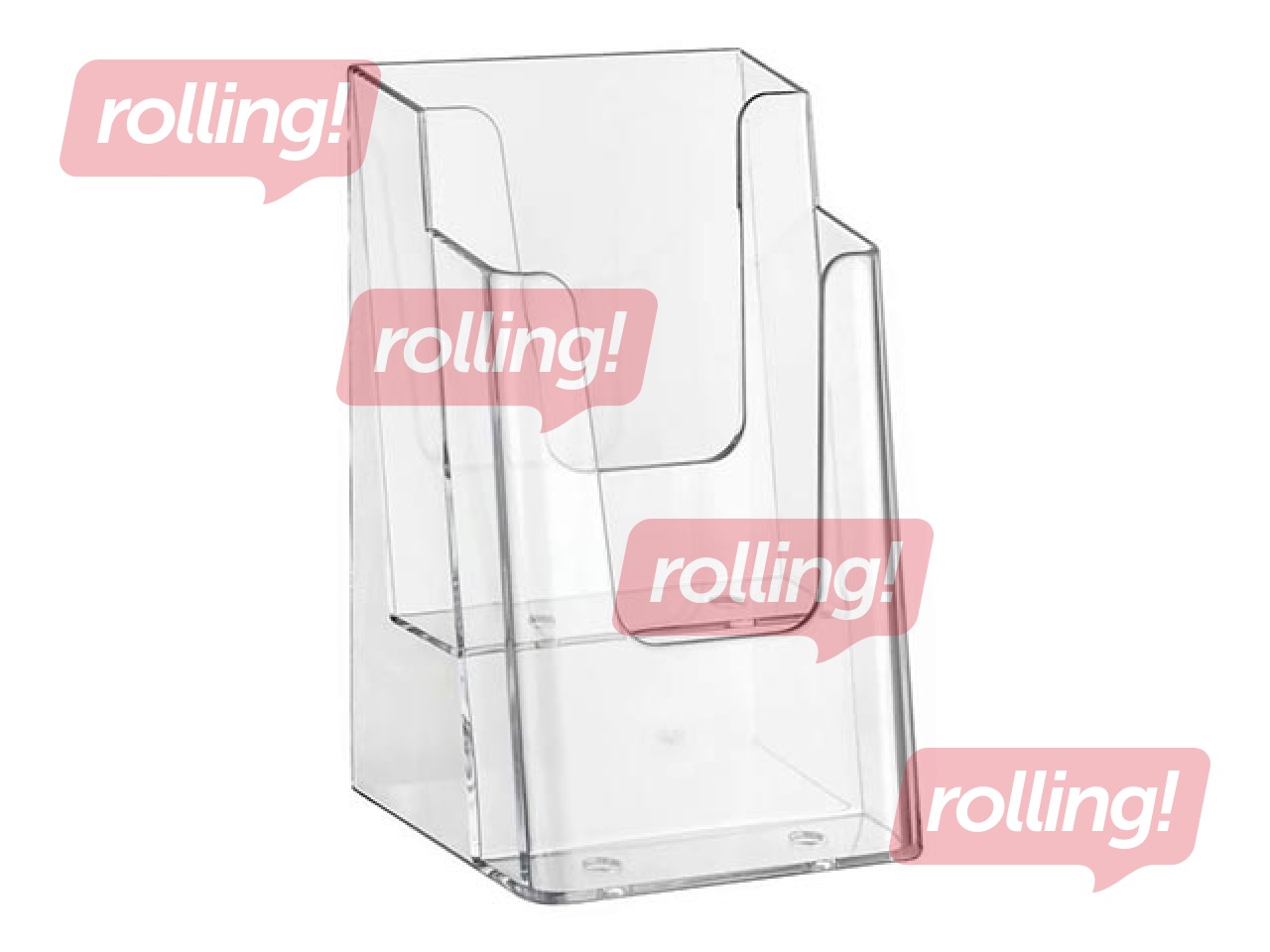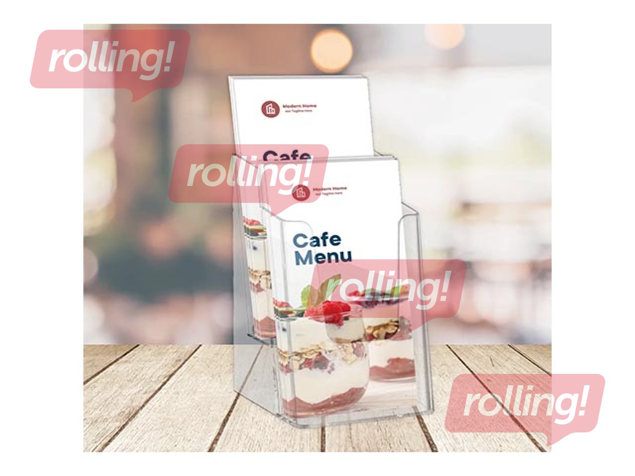 Bukletu turētājs, brīvi stāvošs vai stiprināms pie sienas, ar 2 kabatām, 1/3 no A4