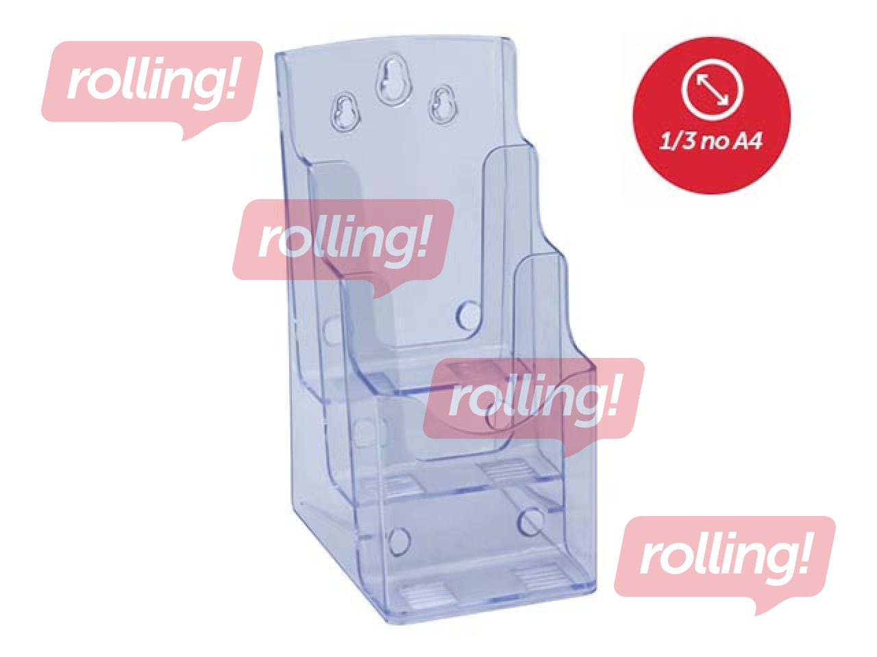 Bukletu turētājs, brīvi stāvošs vai stiprināms pie sienas, ar 3 kabatām, 1/3 no A4