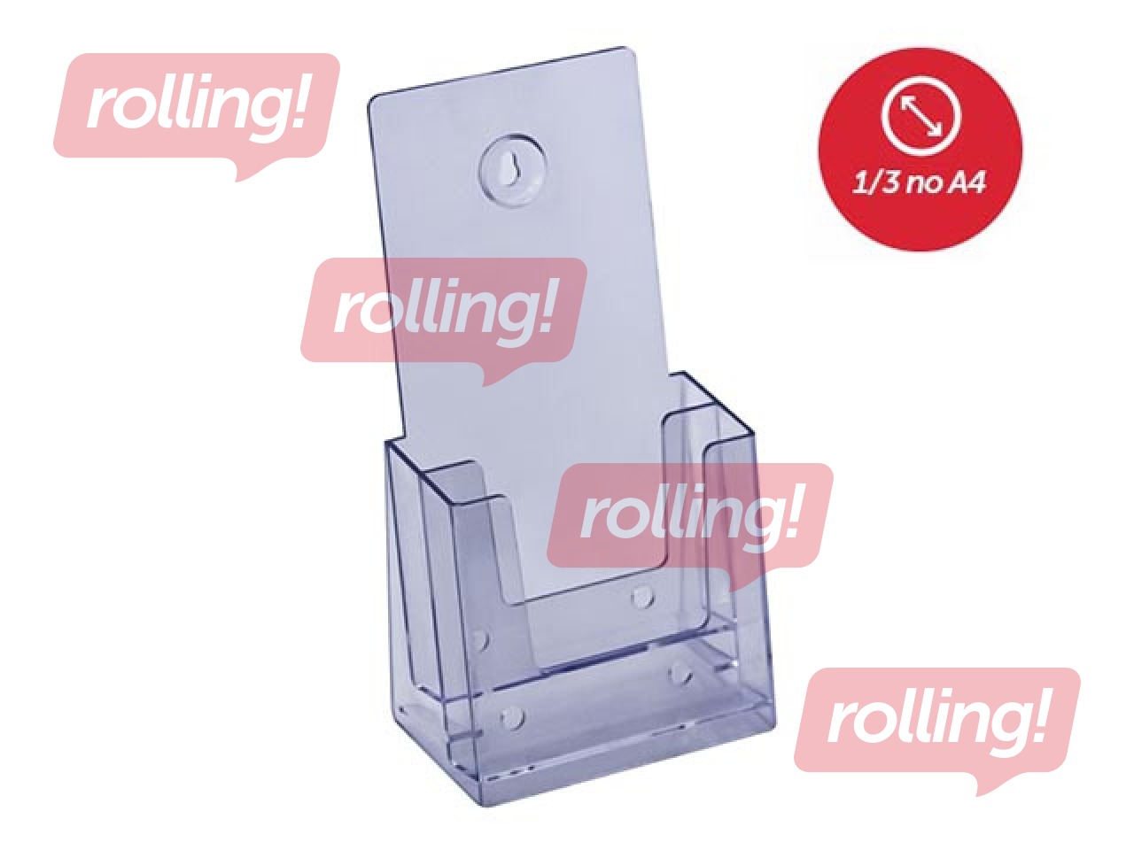 Bukletu turētājs, brīvi stāvošs vai stiprināms pie sienas, ar 2 kabatām, 1/3 no A4