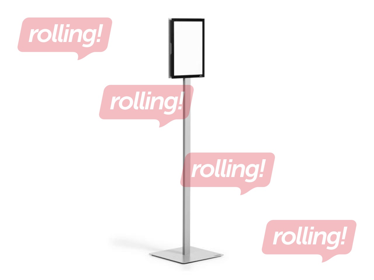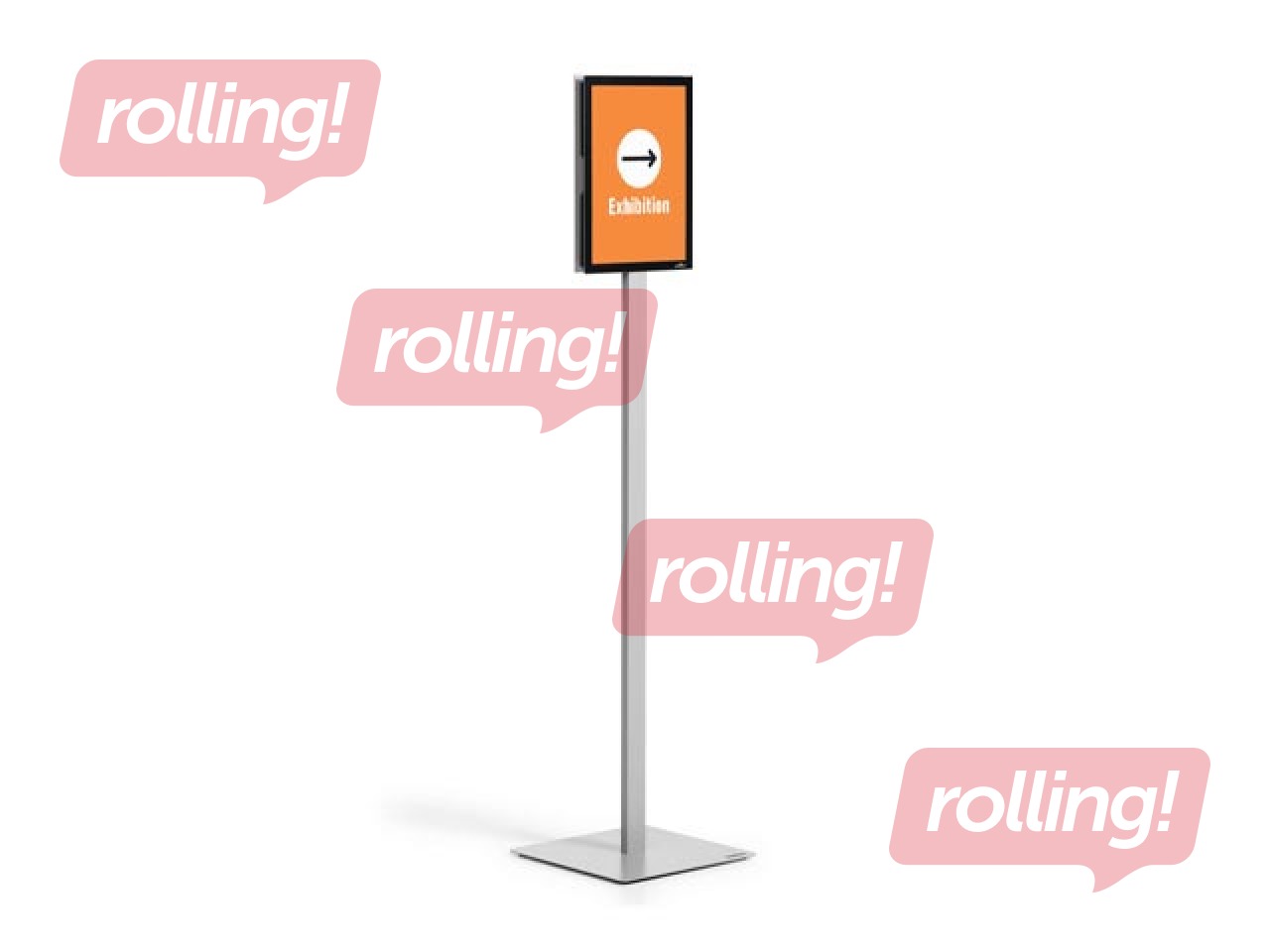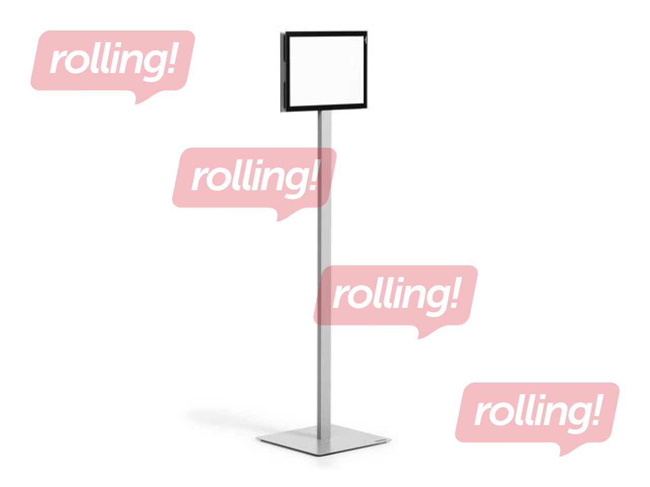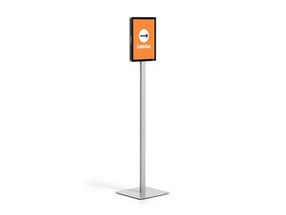 INFO STAND BASIC grīdas statīvs ar divpusēju lasāmību. Piemērots gan informācijas attēlošanai, gan izmantošanai kā orientācijas un vadības sistēma.