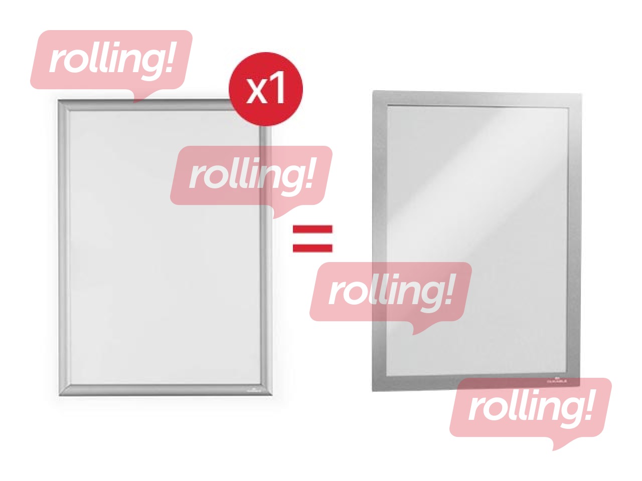 Iegādājies vienu alumīnija profila rāmi Durable un saņem pašlīpošu informācijas kabatu Duraframe ar sudraba rāmi, A4 formātā dāvanā!