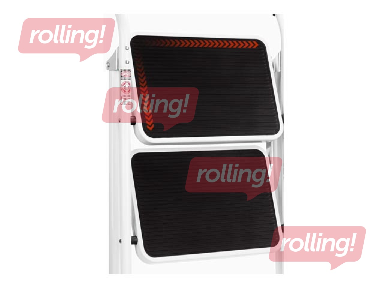 Tērauda trepes ar augstu atbalsta rokturi, kas nodrošina ērtus un drošus darba apstākļus. Maksimālais atļautais svars 150 kg, attālums starp pakāpieniem 250 mm. Pakāpieni ir ar PP neslīdošu pārklājumu. Kāpnes ērti uzglabājams salocītā veidā.