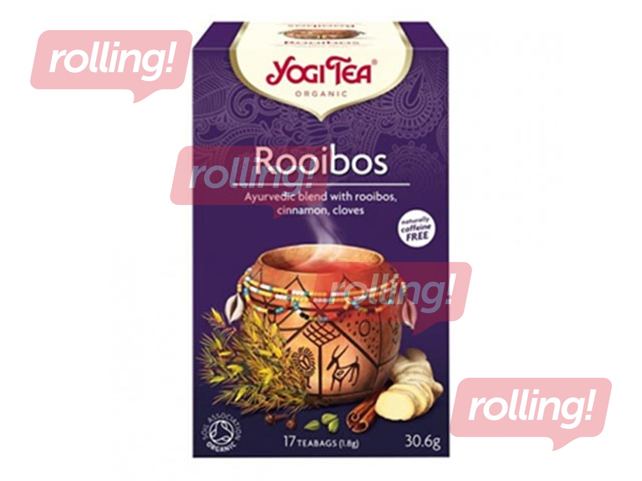 Salda, silta un saulaina. Rooibos tēja iet roku rokā ar Āftikas folkloru. Pievienojot tradicionālās YOGI TEA® garšvielas, kā piemēram, kanēli, ingveru, kardamonu un pavisam nedaudz melnos piparus, rooibos iegūst maigu aromātu, bet karobs un vaniļa padara to par saldu un draudzīgu tēju.