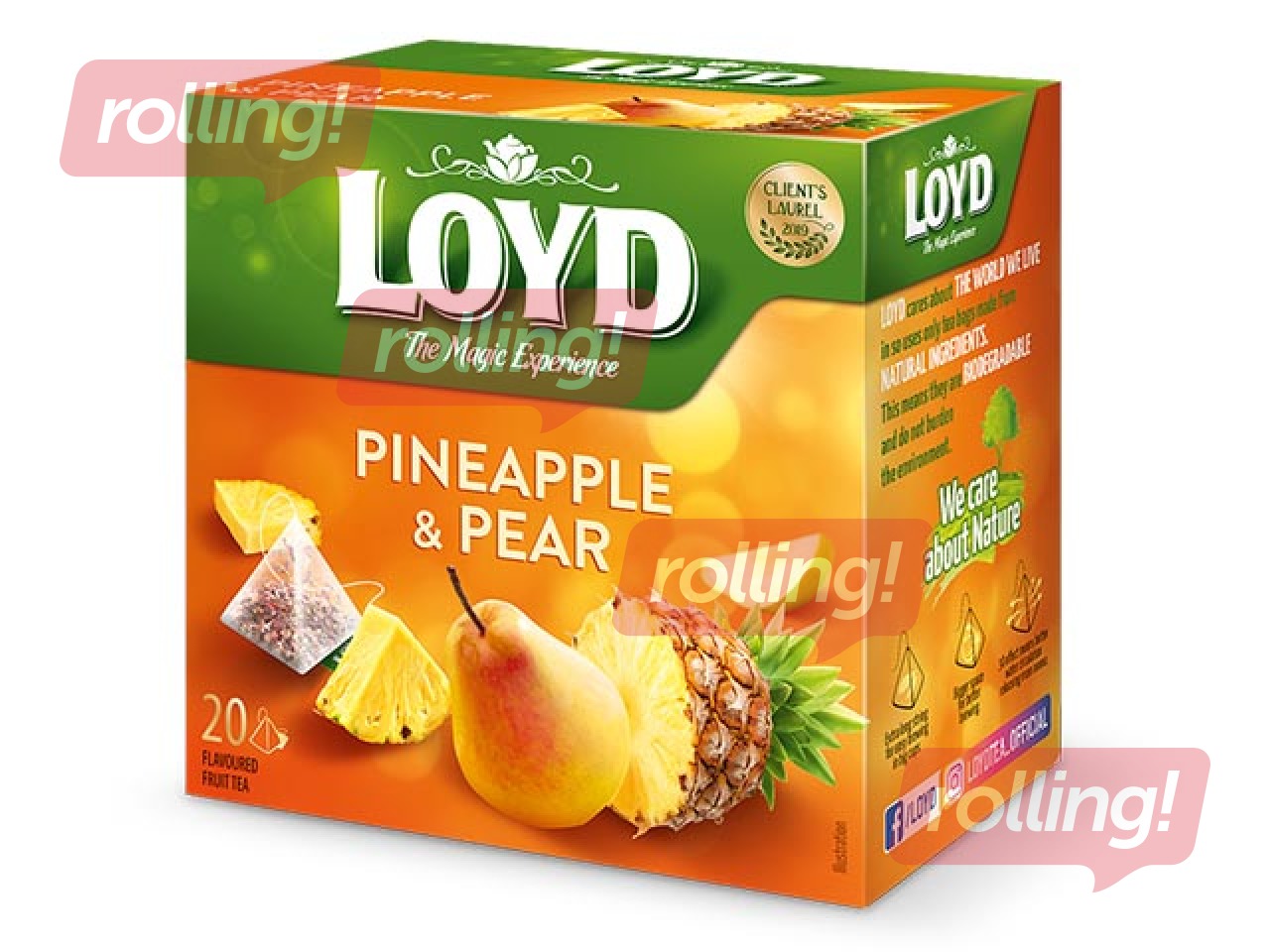 Tēja augļu Loyd Pyramids ar ananasu un bumbieru garšu, 20x2 g