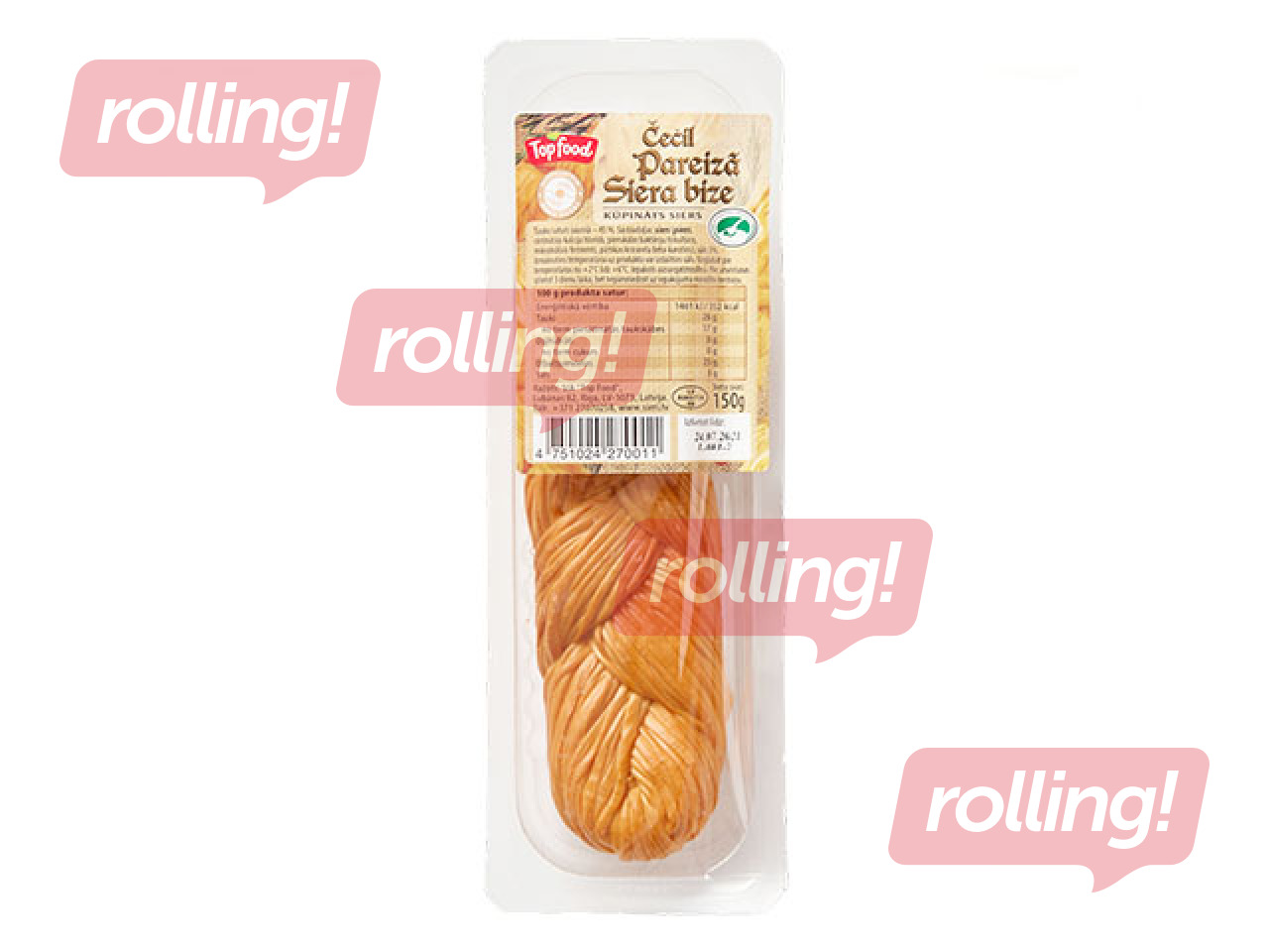 Īstens meistardarbs – zeltaini brūna, kūpināta, ar neatkārtojamu garšu un aromātu, kuru radot, siera meistars siera diegus ar rokām sapin skaistā, kārtīgā bizē.