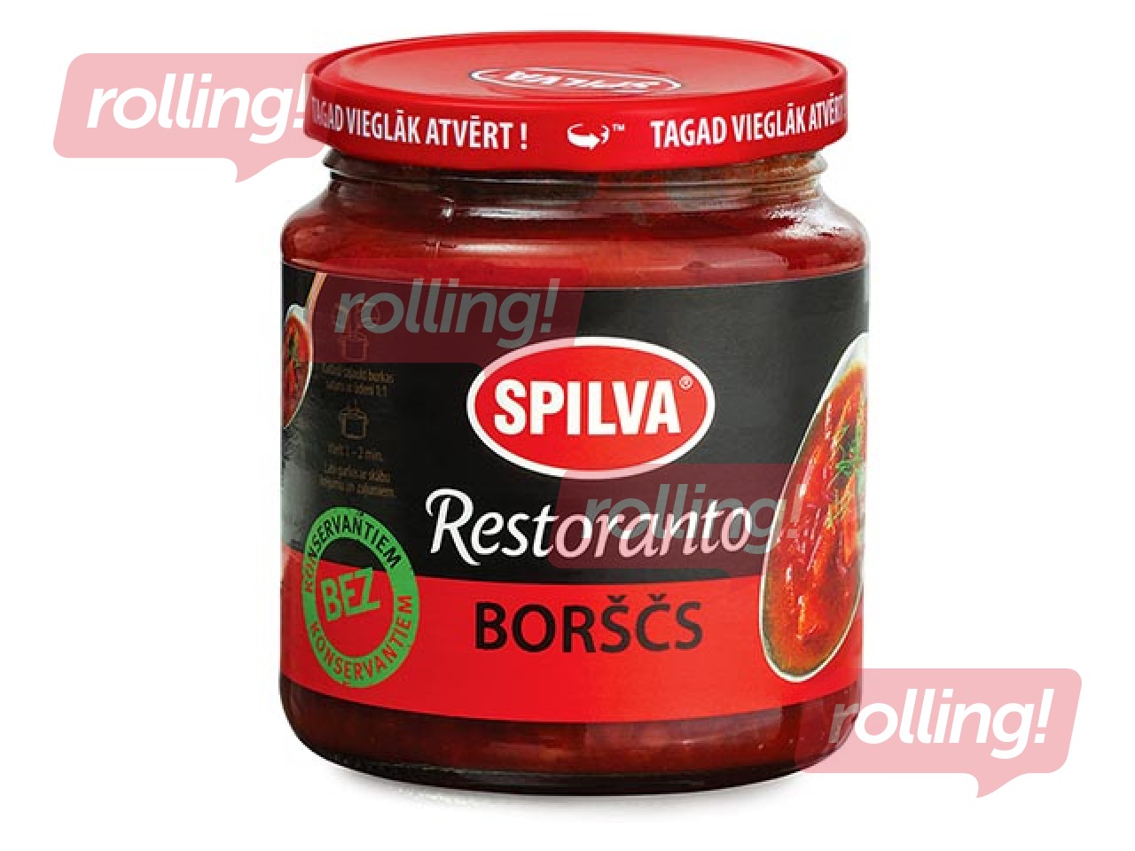 Pagatavošana: 3- 4 porcijas no vienas burciņas. Samaisiet Spilvas zupu Borščs ar ūdeni attiecībā 1:1 un vāriet 3 minūtes. Pasniedziet ar skābu krējumu un zaļumiem.