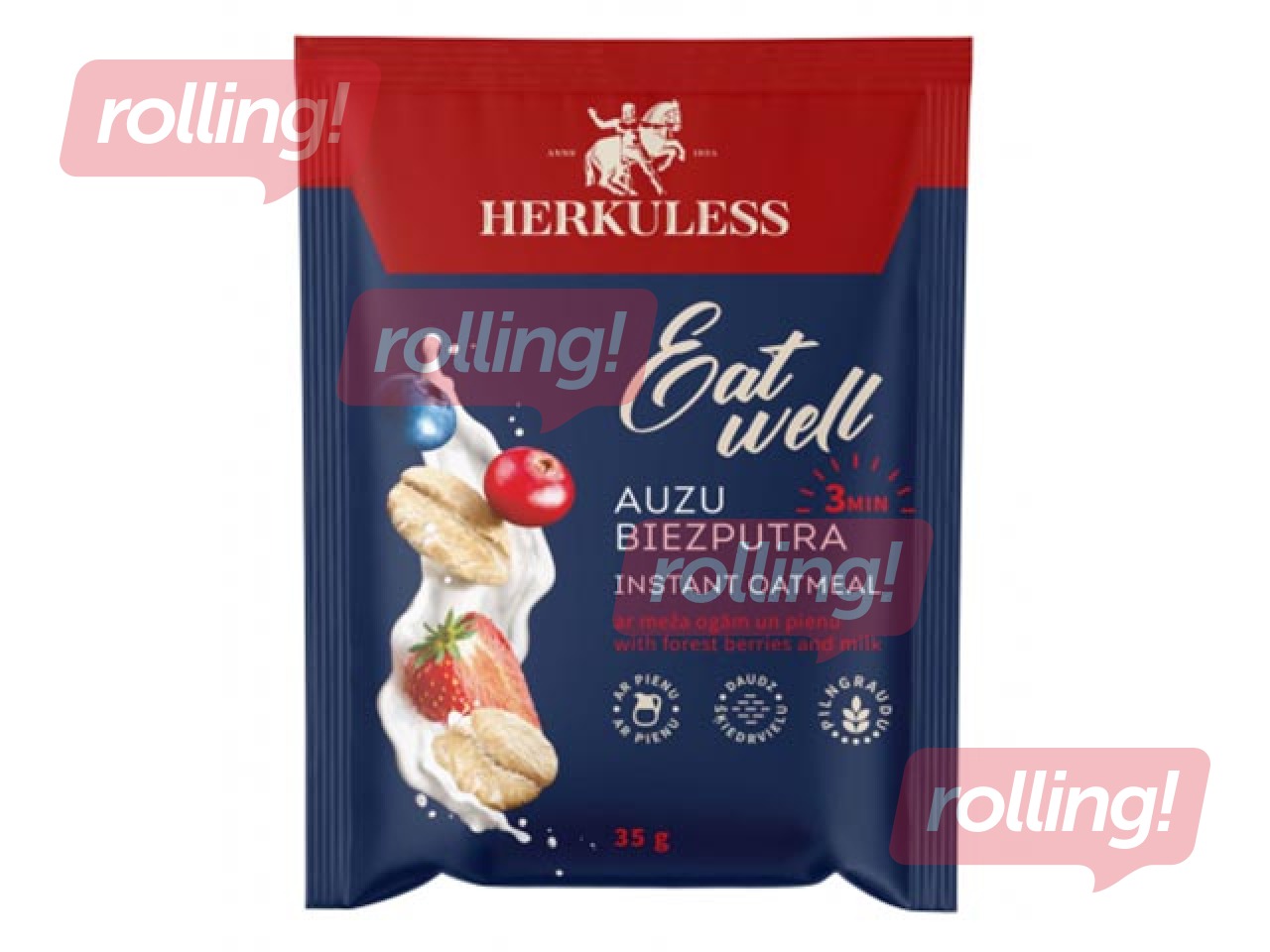 Auzu pārslu biezputra Herkuless, ar meža ogu gabaliņiem un pienu, 35g