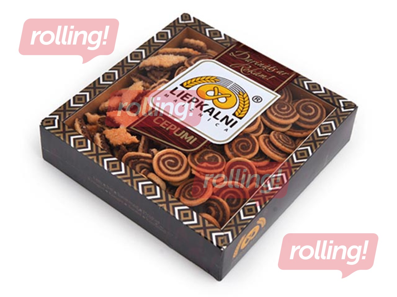 Smilšu mīklas cepumi, kas rakstaini rotājas savā starpā ar divu veidu cepumiem -saktiņām un rombiņiem un dzirkstoši brūno šokolādi.