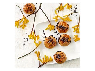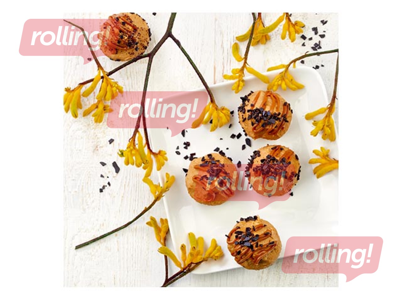 Drupinātu smilšu mīklas cepumu un iebiezinātā piena kūciņas ar vijīgu vārītā iebiezinātā piena pildījumu.
