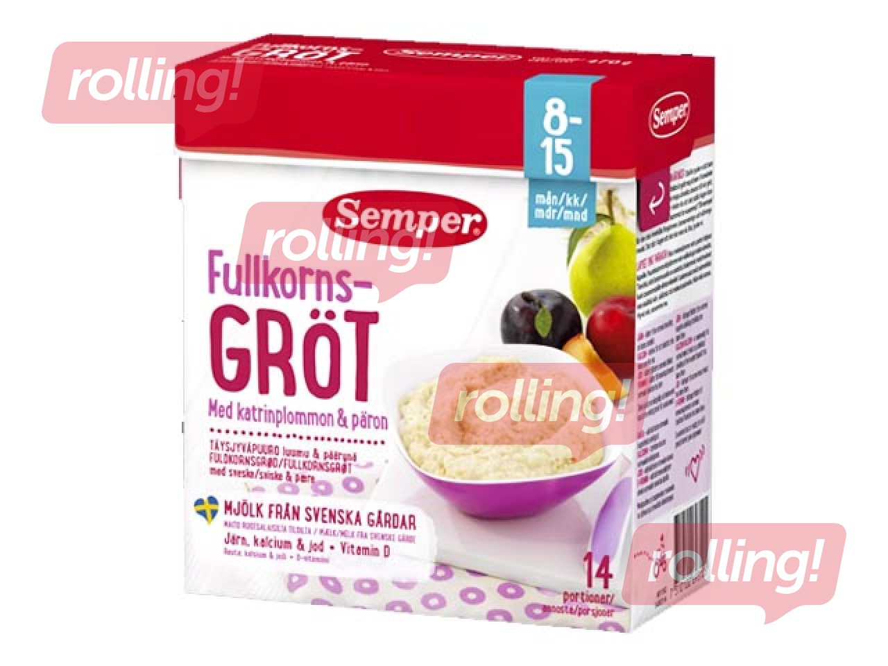 Sastāvdaļas: PIENS (<0,1% tauku saturs), AUZU milti 17%, pilngraudu KVIEŠU milti, PIENA sūkalu pulveris, KVIEŠU milti, KRĒJUMS, bumbieru sulas koncentrāts 9%, rapšu eļļa, saulespuķu eļļa, plūmju gabaliņi 4,5% (plūmes, kukurūzas milti), izsijāti AUZU milti 4%, PIENA olbaltumvielas,