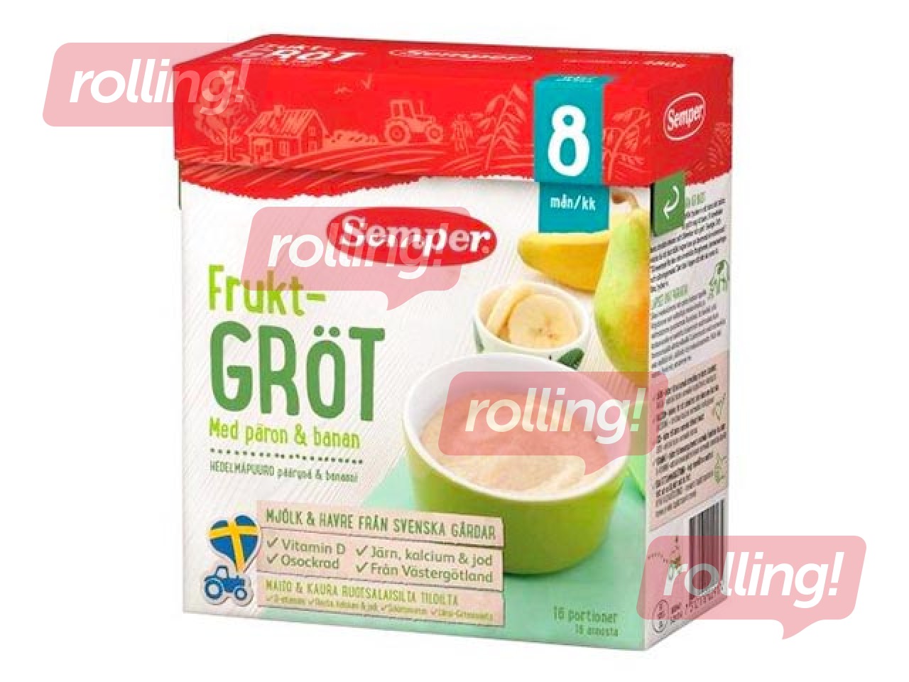 Augļu putra ar bumbieriem un banāniem Semper, no 8 mēnešiem, 480g
