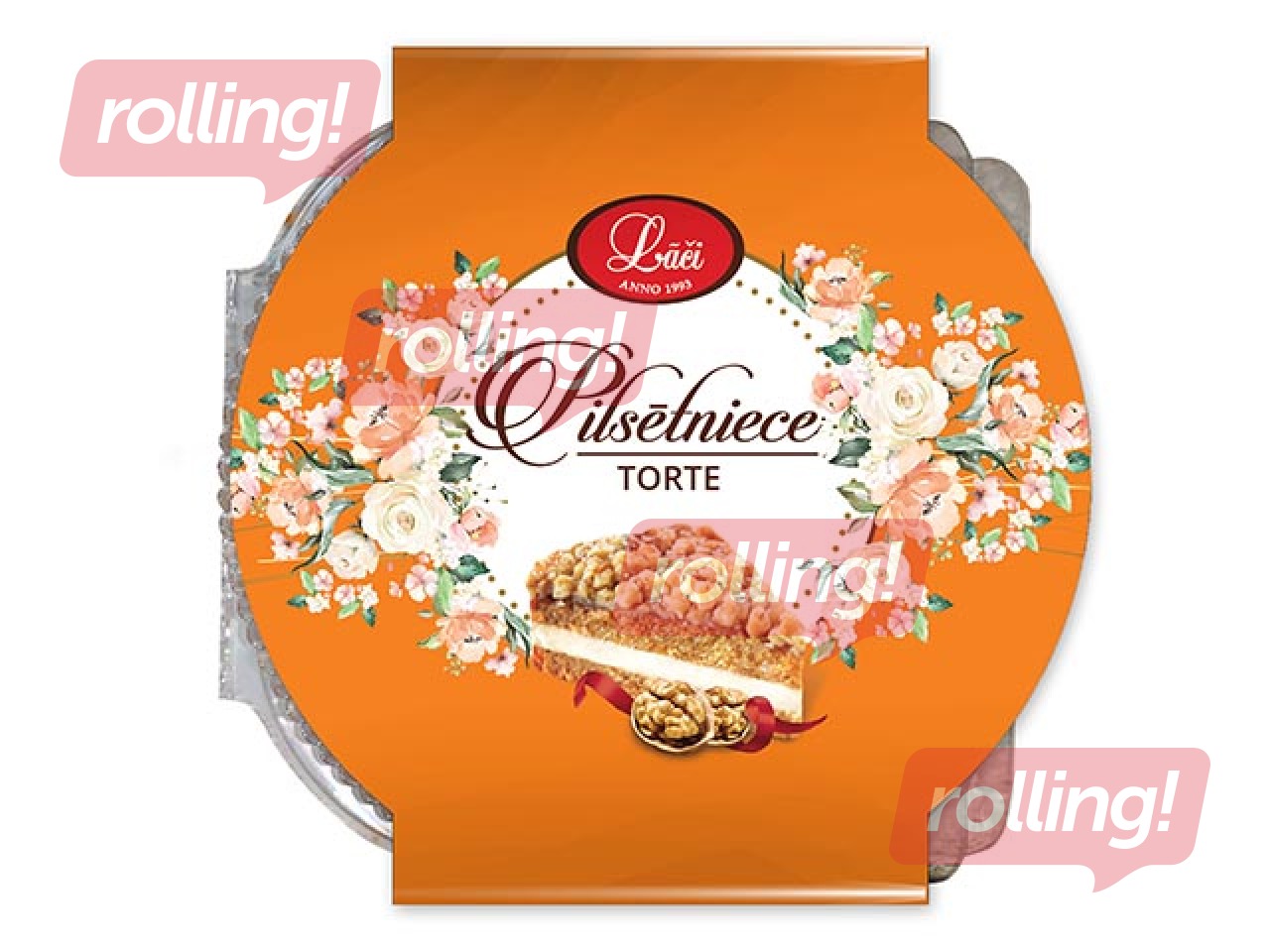 KVIEŠU milti, cukurs, glikozes sīrups, karameļu pildījums (VĀJPIENA pulveris, cukurs, SVIESTS, aromatizētāji, maltodekstrīns, PIENA pulveris, irdinātāji: E450, E500, E575, KVIEŠU lipeklis, emulgatori: E475, E471, aromatizētāji, krāsviela: karamele, biezinātāji: E412, E415, E466, sāls, pretsalipes viela: E551, VALRIEKSTI, OLU masa, rapšu eļļa, SVIESTS, medus, pūdercukurs, margarīns (dzīvnieku tauki  un rapšu eļļa, ūdens, sāls, emulgators: SOJAS lecitīns, E471, konservants: kālija sorbāts, skābuma regulētājs: citronskābe, pārtikas krāsviela: beta. karotīns), krēms (cukurs, ciete, VĀJPIENA pulveris, glikozes sīrups, hidrogenēti augu tauki (kokosa), recinātājs: E401, skābuma regulētāji: E450, E263, E516, E331, sāls, emulgators: E471, krāsviela: karotīns, riboflavīns, aromatizētājs), pūdercukurs