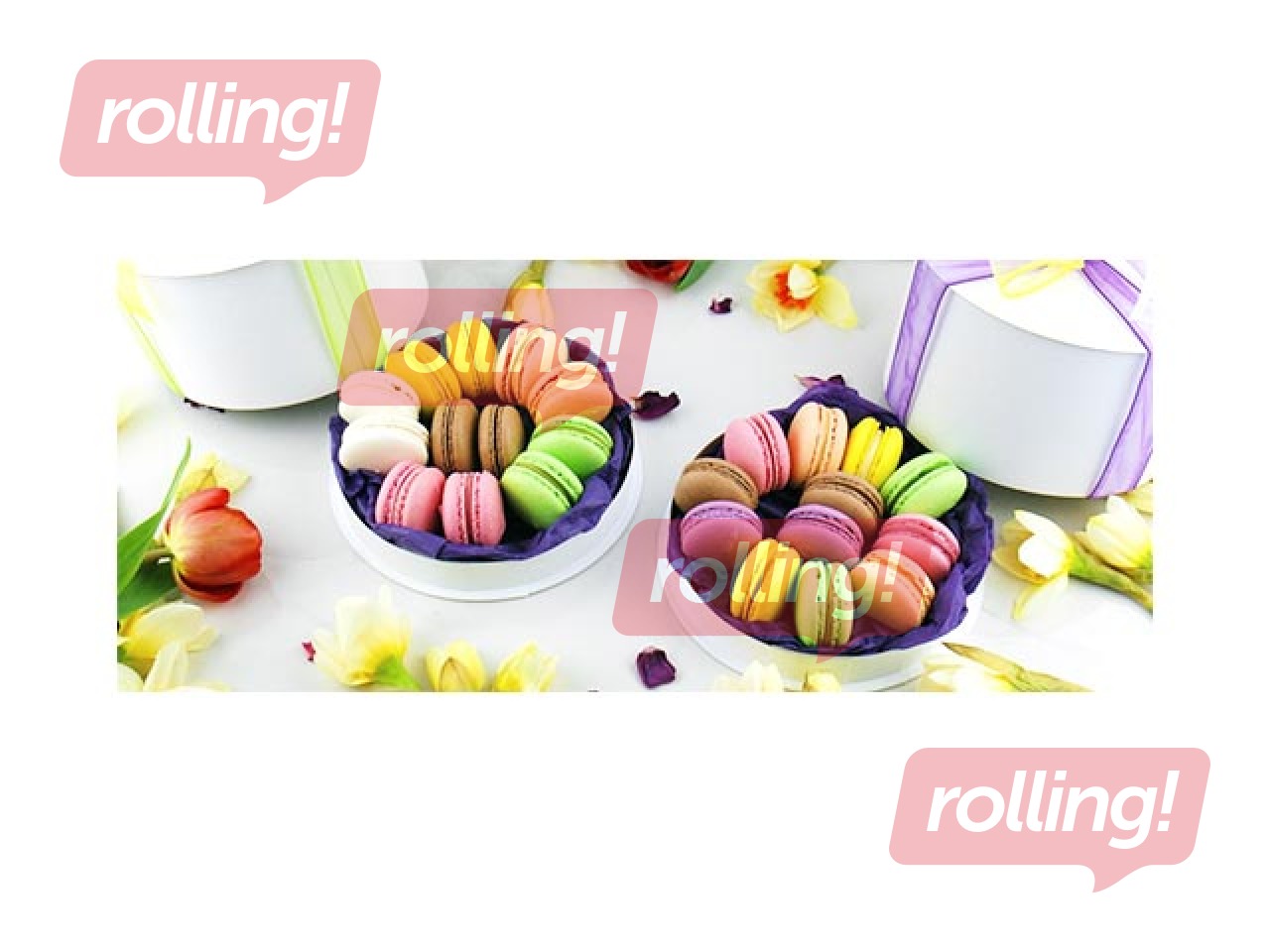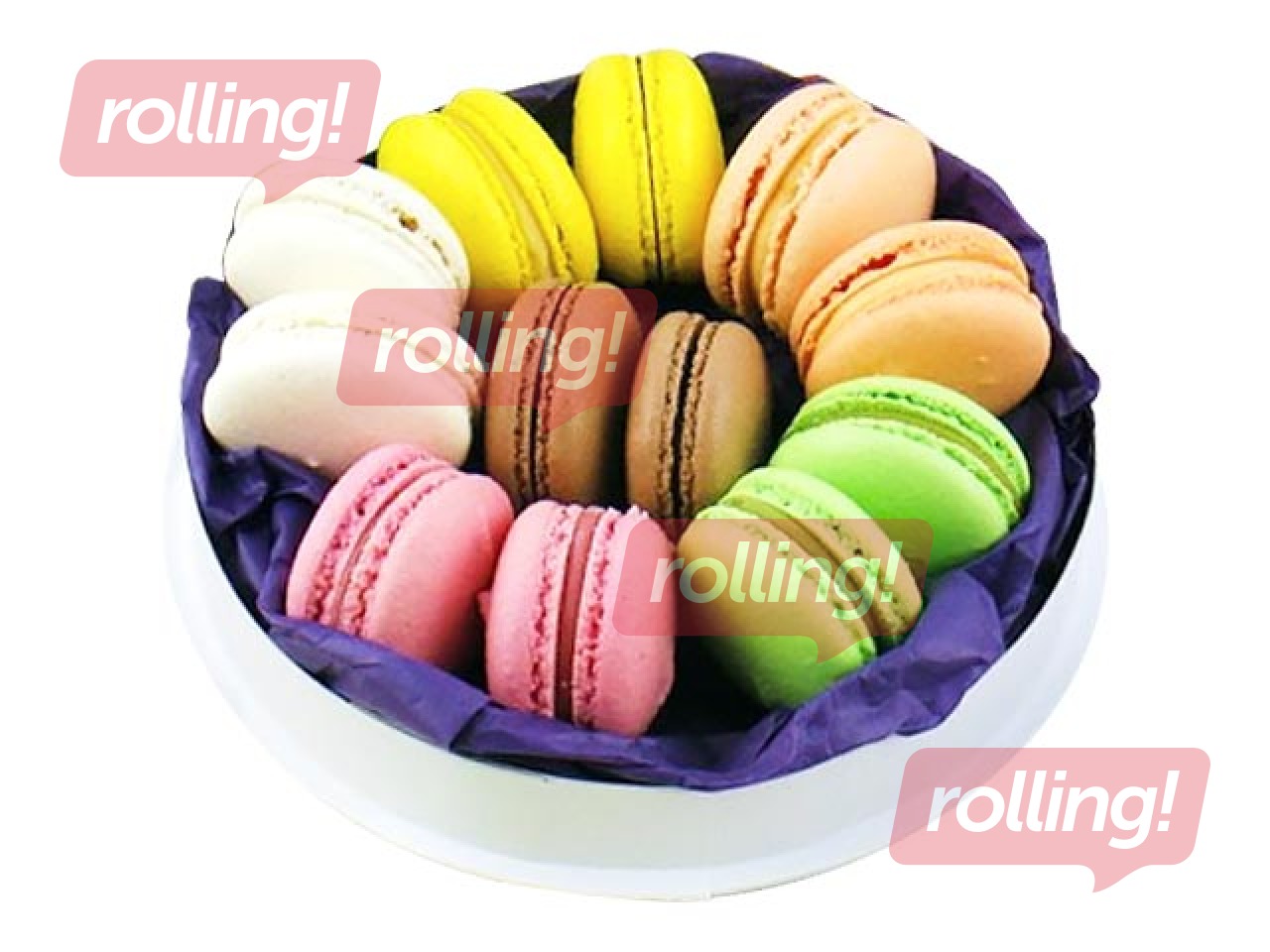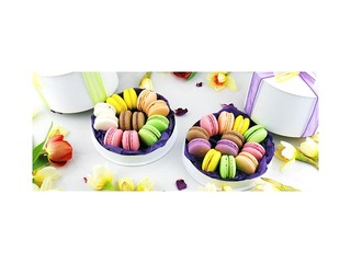 Dāvanu izlase - lieliskie franču makarūnu cepumi ar dabīgo pildījumu krāsainā svētktu iepakojumā.