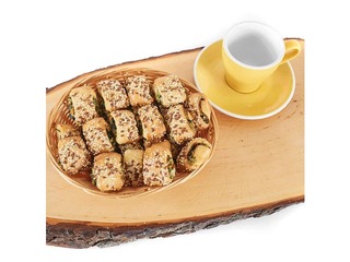 Dekors: sezama sēklas un linsēklas