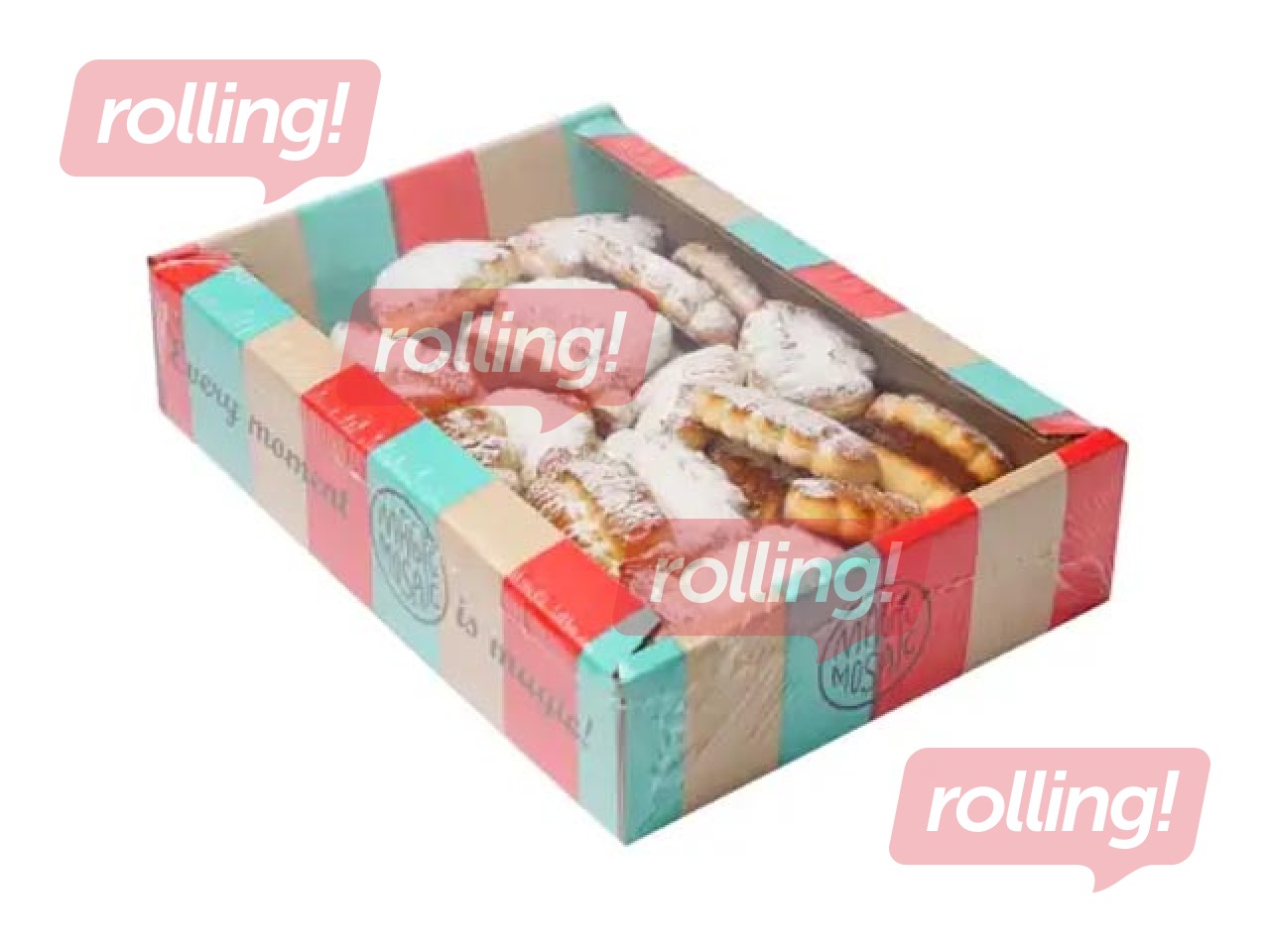 Sastāvs: Kviešu milti, cukurs, margarīns (daļēji hidrogenēti augu tauki (saulespuķu un palmu), emulgators: sojas lecitīns, skābuma regulētājs E330, konservants E202), sausās piena sūkalas, pūdercukurs (3%), invertsīrups (cukurs, skābuma regulētājs E270, E500ii), olu pulveris, sāls, irdinātājs E503, aromatizētāji.