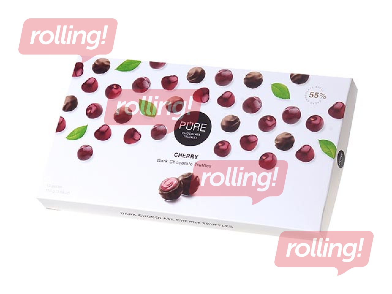 Tumšās šokolādes trifeles ar ķiršu krēma pildījumu. Klasisks garšu savienojums. Ziemā vai vasarā izbaudi dzīves svinēšanu ar saldo ķiršu garšu un rūgtenu šokolādi. Noķer mirkli vasaras pilnbrieda un paturi uz mēles.