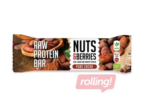 Sastāvdaļas: dateles* (40%), RIEKSTI* (32%) (MANDELES*, BRAZĪLIJAS RIEKSTI*), ķirbju sēklas*, proteīna maisījums* (10%) (rīsu proteīns*, zirņu proteīns*), kakao*. *No kontrolētām bioloģiskajām lauksaimniecībām. Var saturēt GLUTĒNA, SOJAS, ZEMESRIEKSTU un SEZAMA sēklu daļiņas. Uzglabāt sausā, vēsā vietā, prom no karstuma.