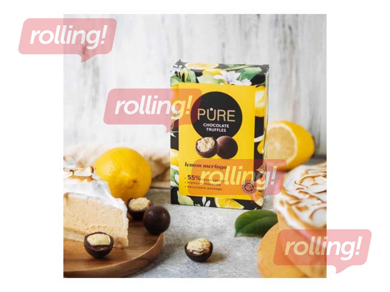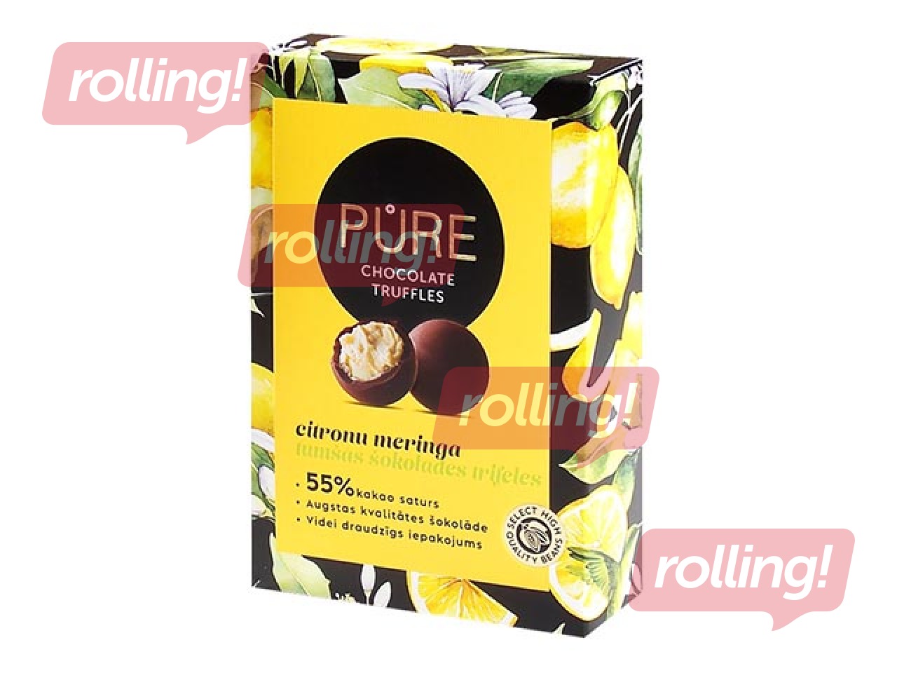 Tumšās šokolādes trifeles Pure Chocolate ar citronu meringas krēma pildījumu, 148 g