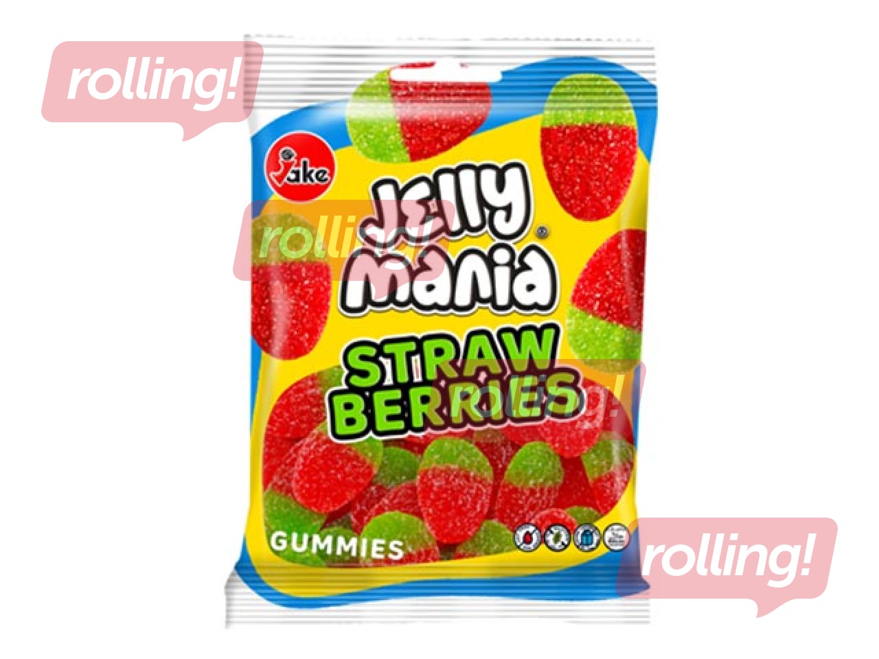 Jelly Mania Strawberries skābas želejveidīgas košļājamās konfektes.